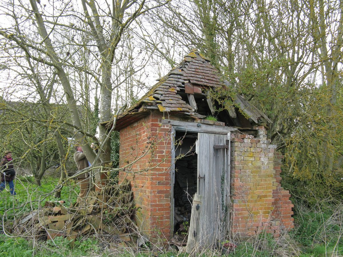 - Description: Constructed of brick with a tile roof in a style similar to that of the garden house. It is square with a single door at the front.