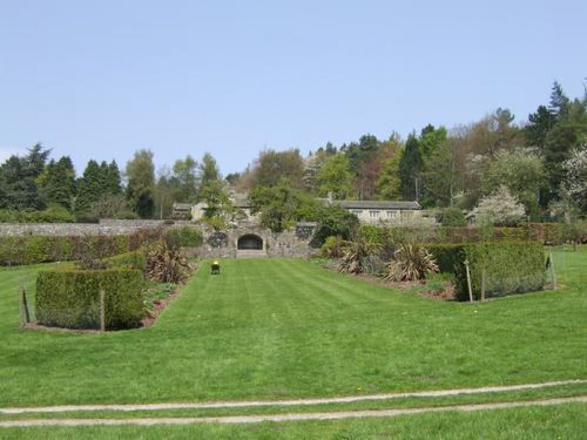 The rectangular kitchen garden lies in a sheltered position 175m south-west of the Hall, adjacent to the south end of the west boundary. It is bounded by stone walls and given over to several uses including lawn at the northern end, vegetable beds along the west and south sides, and car parking on the east side. At the north end stands a lean-to glasshouse. The walled garden was erected during the 1930s for Sir William.