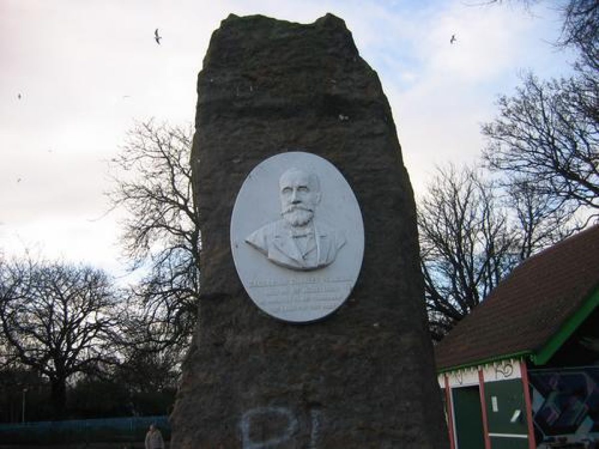 - Description: An ironstone (granite?) monolith with a marble plaque commemorating Zachariah Charkes Pearson, who bought the land and presented the park to the City. The plaque was carved by William Day Keyworth junior in 1897.