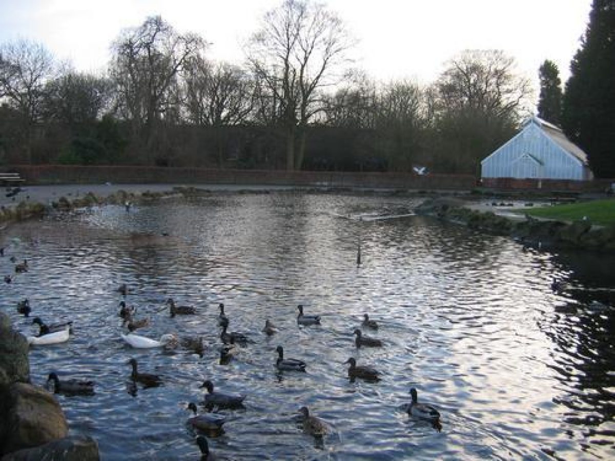 The conservatory on the south bank of the lake is a 1930s rebuild of original Victorian conservatory and is now used as an aviary and to house an aquarium. To the east of the conservatory is an ornamental cast-iron drinking fountain (disused) presented to the park by Mr Atkinson. The rockery around the drinking fountain, which was acquired from the former Zoological Gardens, has been removed and replaced by stone paving. The small modern refreshment building to the north of the lake occupies the site of an aviary (1885) which was removed after the Second World War. A rustic shelter adjacent to the aviary was also removed at the same time. At the northern tip of the lake is an ironstone memorial to Zachariah Pearson.