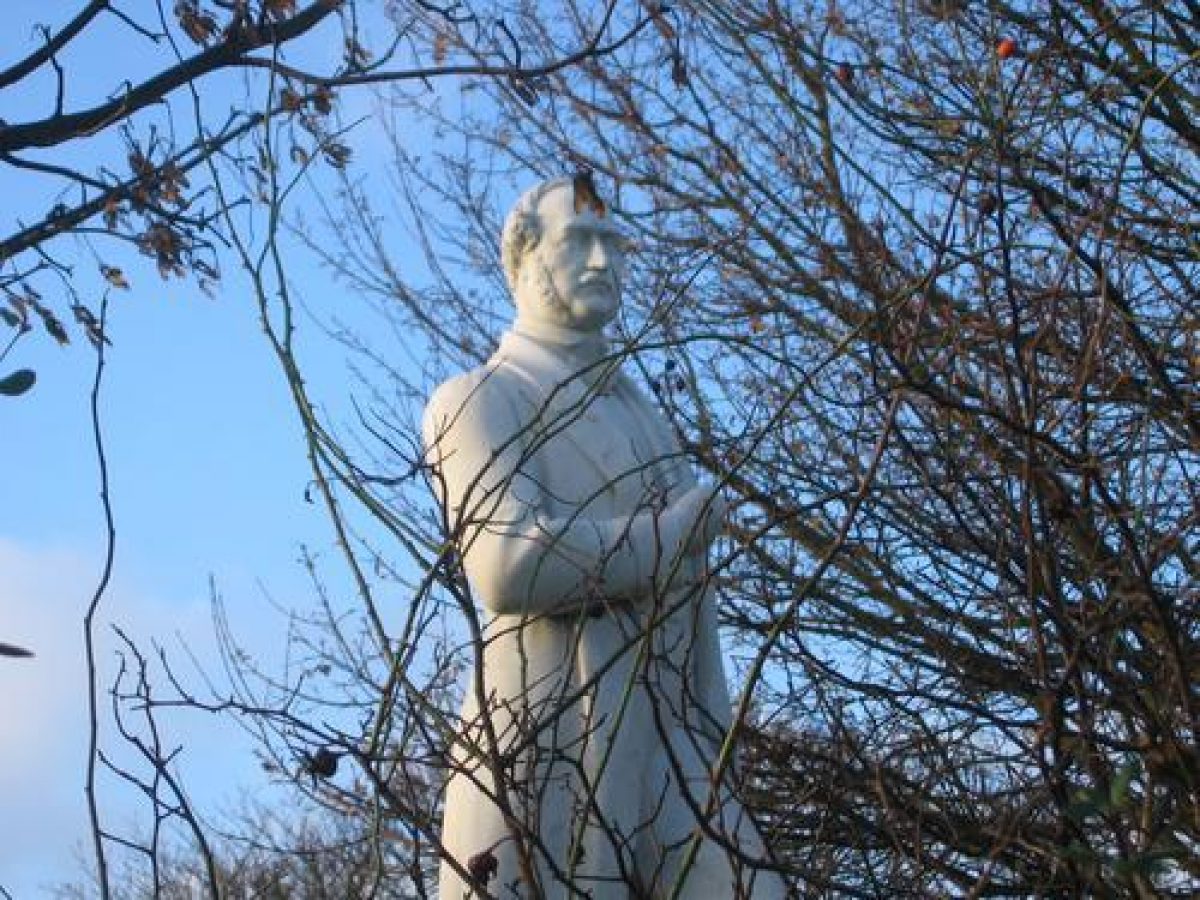 - Description: Marble statue of Prince Albert, sculpted by Thomas Earle in 1868, now surrounded by shrubbery.