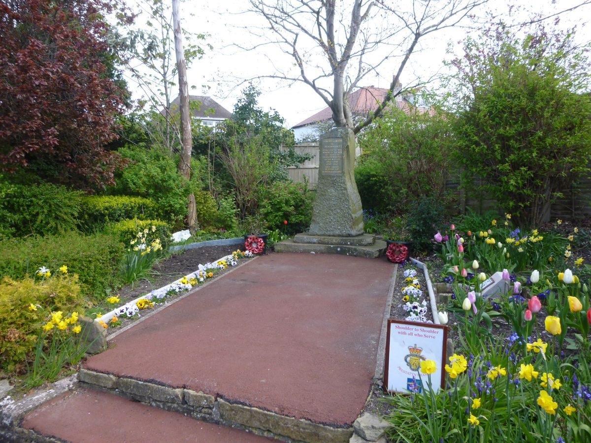 This garden of remembrance contains a rough stone monolith as the memorial, commemorating those who gave their lives in both World Wars.