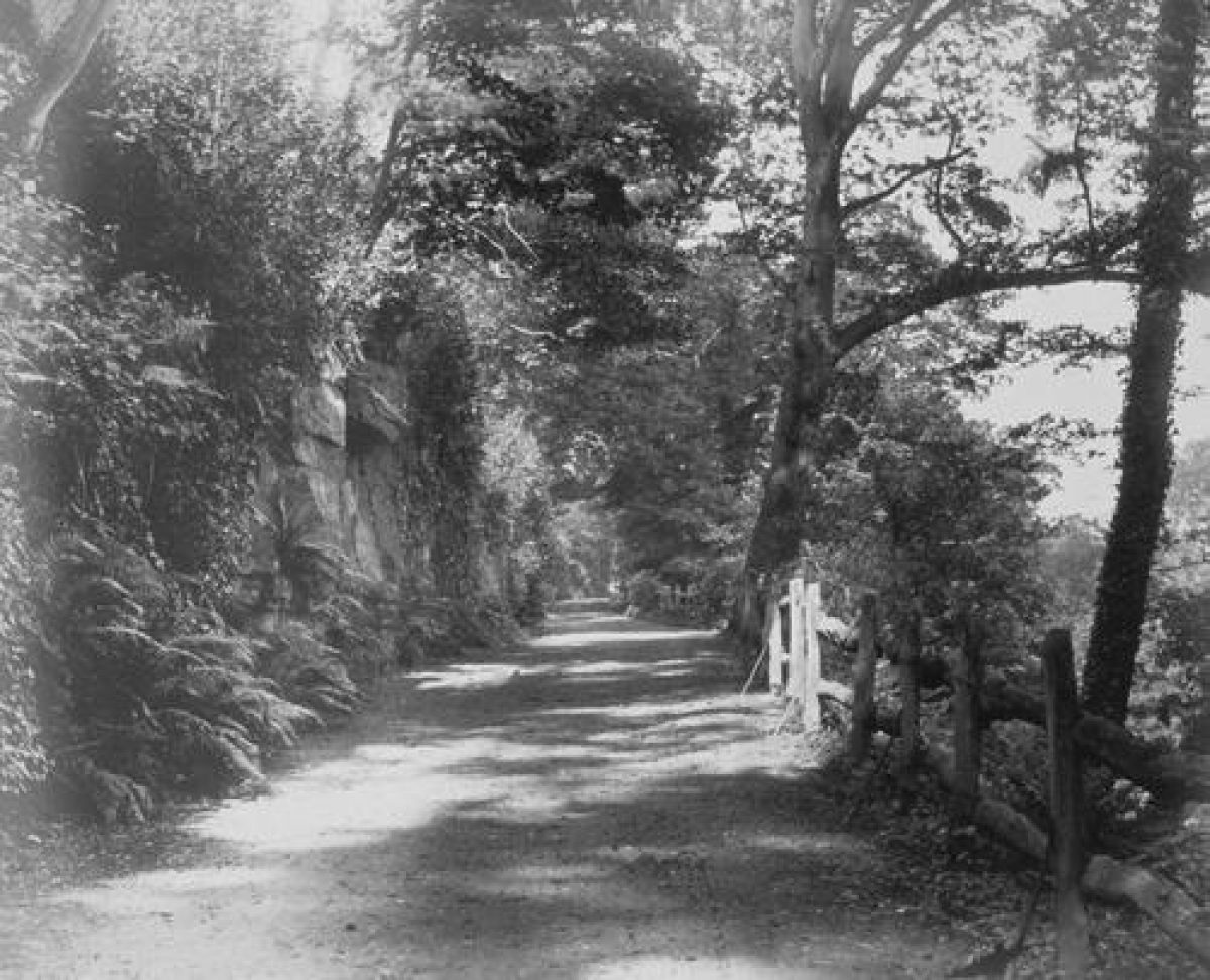 - Description: Presaged by his father but executed by John Dillwyn Llewelyn in 1833 the drive provided a bold, unifying baseline for his re-modelled landscape. It is also an important feature in its own right, starting as a country road but abruptly transforming into a rocky ledge carved into a precipitous slope, before ending with a flourish at the mansion, previously hidden. It is deduced that the building of this drive in 1833 permitted the abandonment of the previous one and thus enabled the extension of the Quarry as well as the Walled Gardens enclosure, both significant developments in the landscape design and functionality.Although curtailed by the modern development of the Civic Centre, the 1833 drive is largely intact, despite neglect, collapses of revetments and encroachment of vegetation. Even if not used as a vehicular route its restoration to its former importance as a means of viewing the landscape in the manner envisaged by John Dillwyn Llewelyn would be completely practicable. The surface is largely serviceable.