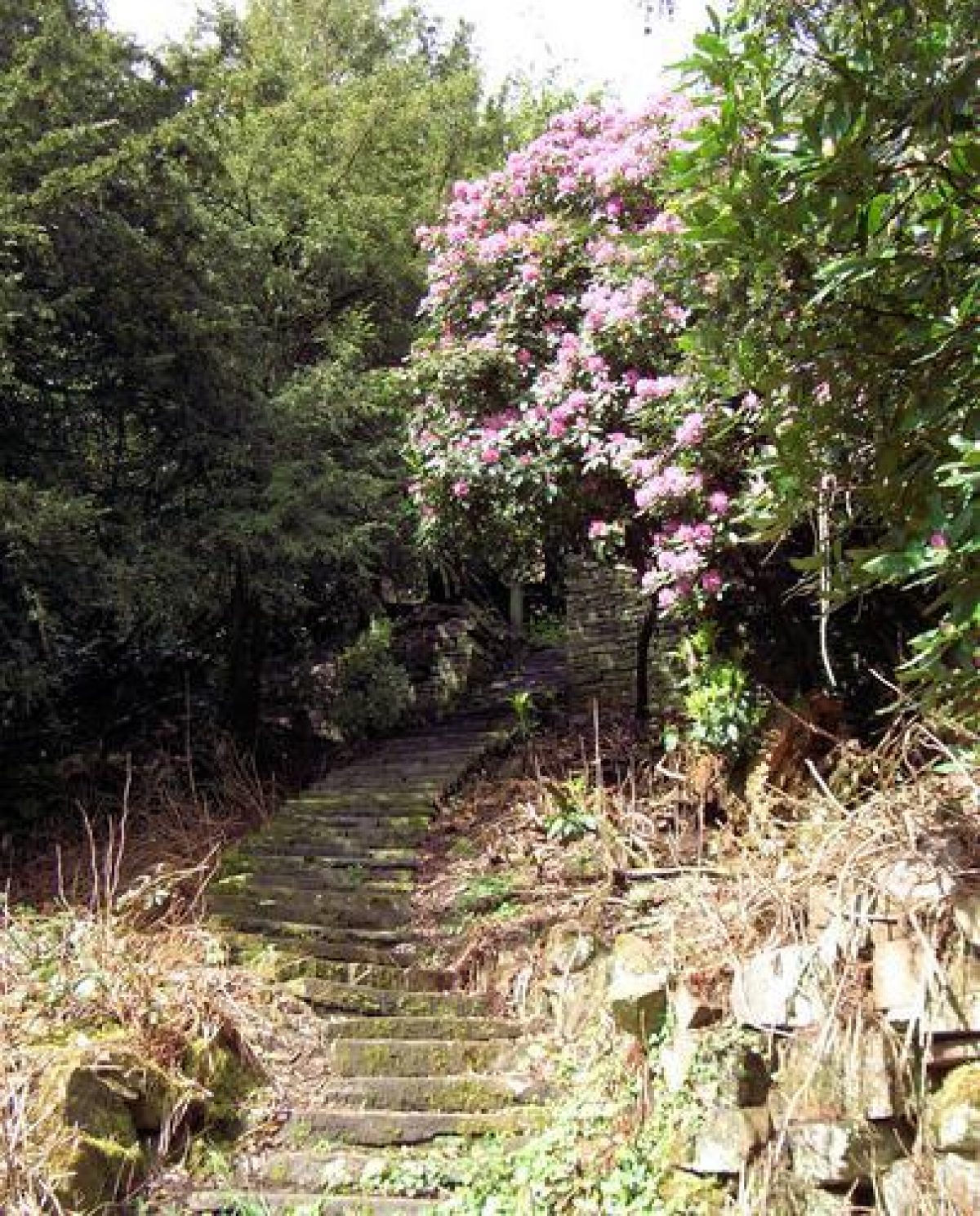 - Description: This feature is the east terraces. These consist of paths, terraces and steps on the east flank. John Dillwyn Llewelyn's photographs show little evidence of formal plantings, mature native trees being the dominant feature. As with the western side, the quarried faces (some undoubtedly providing viewing platforms) add to the picturesque design, echoed by the upper lake. On both sides, lightly modified rivulets are important features. The terraces and steps remain serviceable in the main but collapses have occurred in many places, largely accelerated by the ingress of vegetation, including substantial trees. All require systematic inspection and refurbishment.