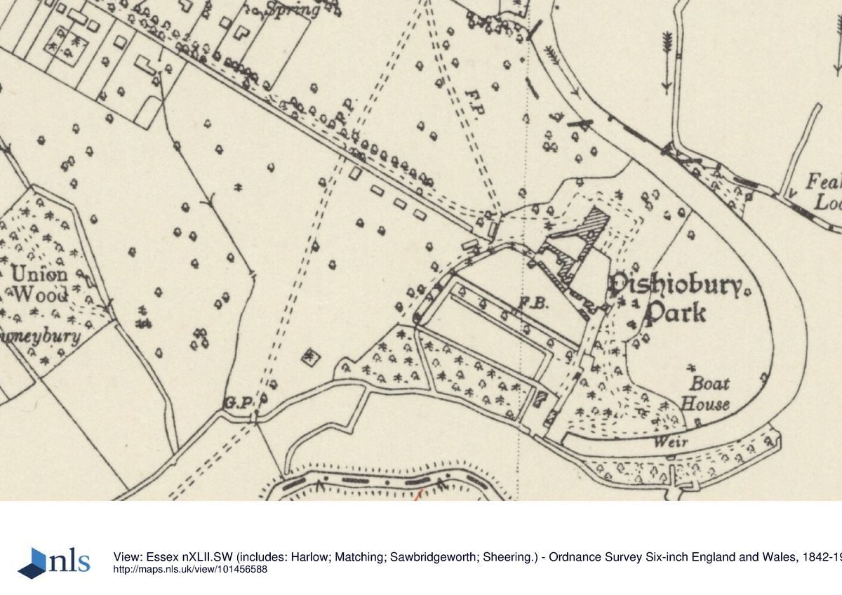 The setting is partly rural, with the C20 development of Sawbridgeworth adjacent to the north. An area of agricultural land, outside the area here registered and formerly part of the estate, lies adjacent to the south-west, forming a buffer between the park and the north-east edge of Harlow. Formerly, Rowney Lodge, a small, single-storey brick lodge which stands 900m west of the house on the A414, gave access to a south-west drive (gone, 1999) which crossed this area eastwards, extending along the south side of Union Wood to cross the park to the north-east and join the east end of the west drive (OS 1880).