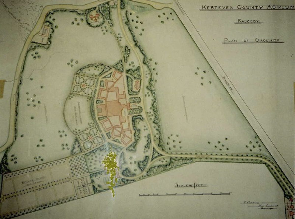 The Minute Books of the Visiting Committee of Kesteven County Asylum (1894-1925) provide information on the period during which the building was erected and the grounds were laid out, the latter starting in September 1899 and continuing until 1906. The Minutes detail the initial engagement in 1899 of Mr R Lloyd, Gardener at the Surrey County Asylum at Brookwood, to advise on the planting and layout of the grounds and roads. Lloyd was unable to carry out the commission due to ill health and following his resignation, William Goldring was engaged in July 1900 at 4 guineas per day and produced a layout plan in August 1900. Over the following six years the plan was executed largely to Goldring's design and under his supervision, incorporating some modifications suggested by the Committee.