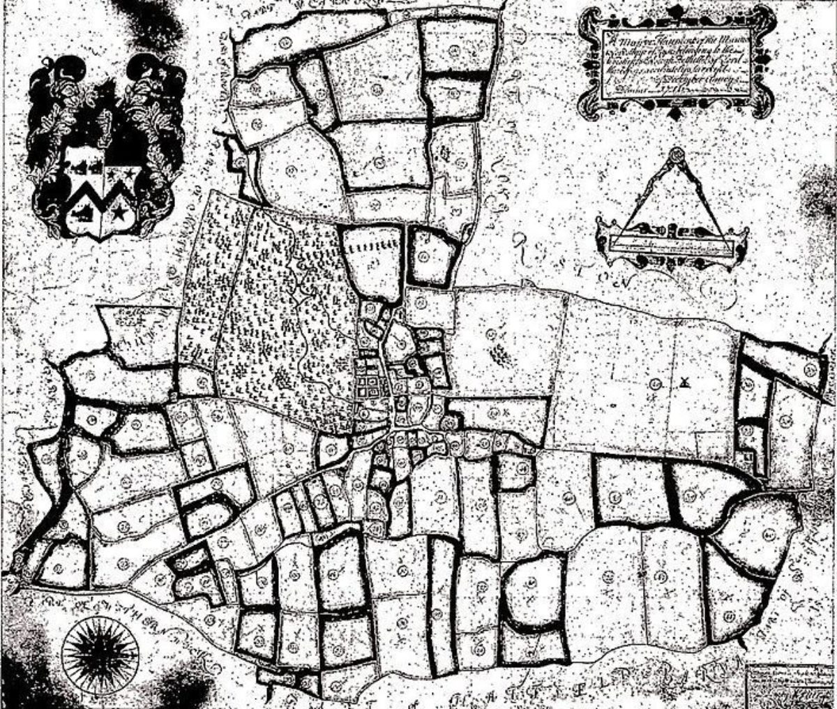 A plan of the estate in 1762 shows some changes had already been made since 1716, when the deer were kept in the woods. By 1762 the area south of the hall was divided into two with a fenced deer park to the east and woodland to the west.