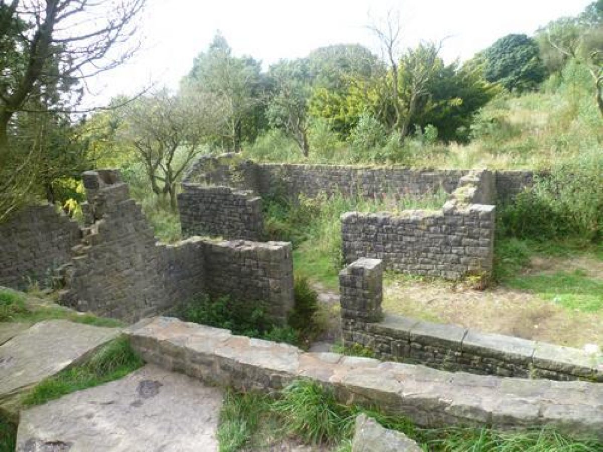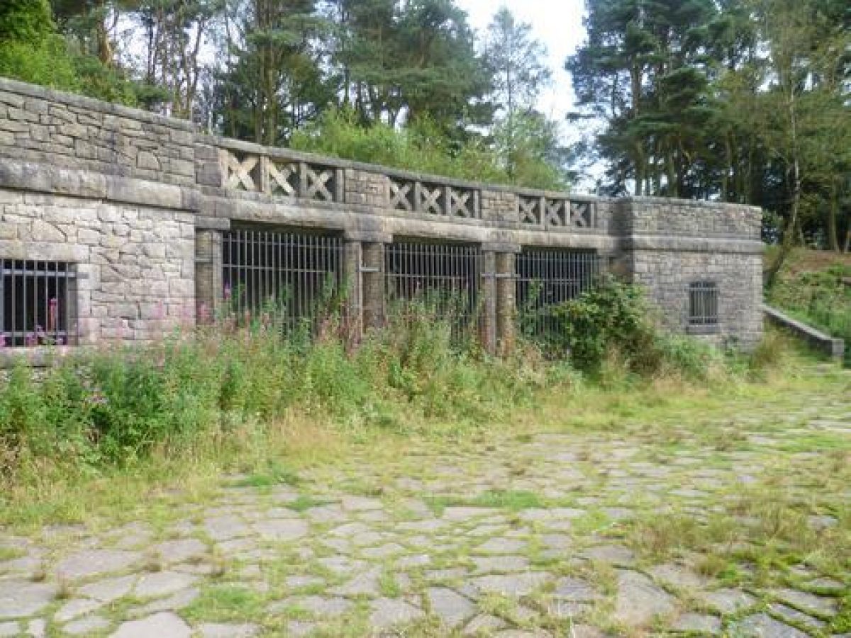 The bungalow, known as Roynton Cottage, was situated on a hillside platform close to the north-east corner of the site. It was initially a prefabricated wooden house erected in 1900/01, supplied by a firm in Manchester, and described by them as a shooting box. After destruction in an arson attack in 1913 it was rebuilt in stone on a much grander scale and incorporated features such as a circular ballroom, music gallery, glass-roofed pergola, winter gardens, kitchen, dining room, lounge, morning room, library, study and servant's quarters. It was demolished in 1948.