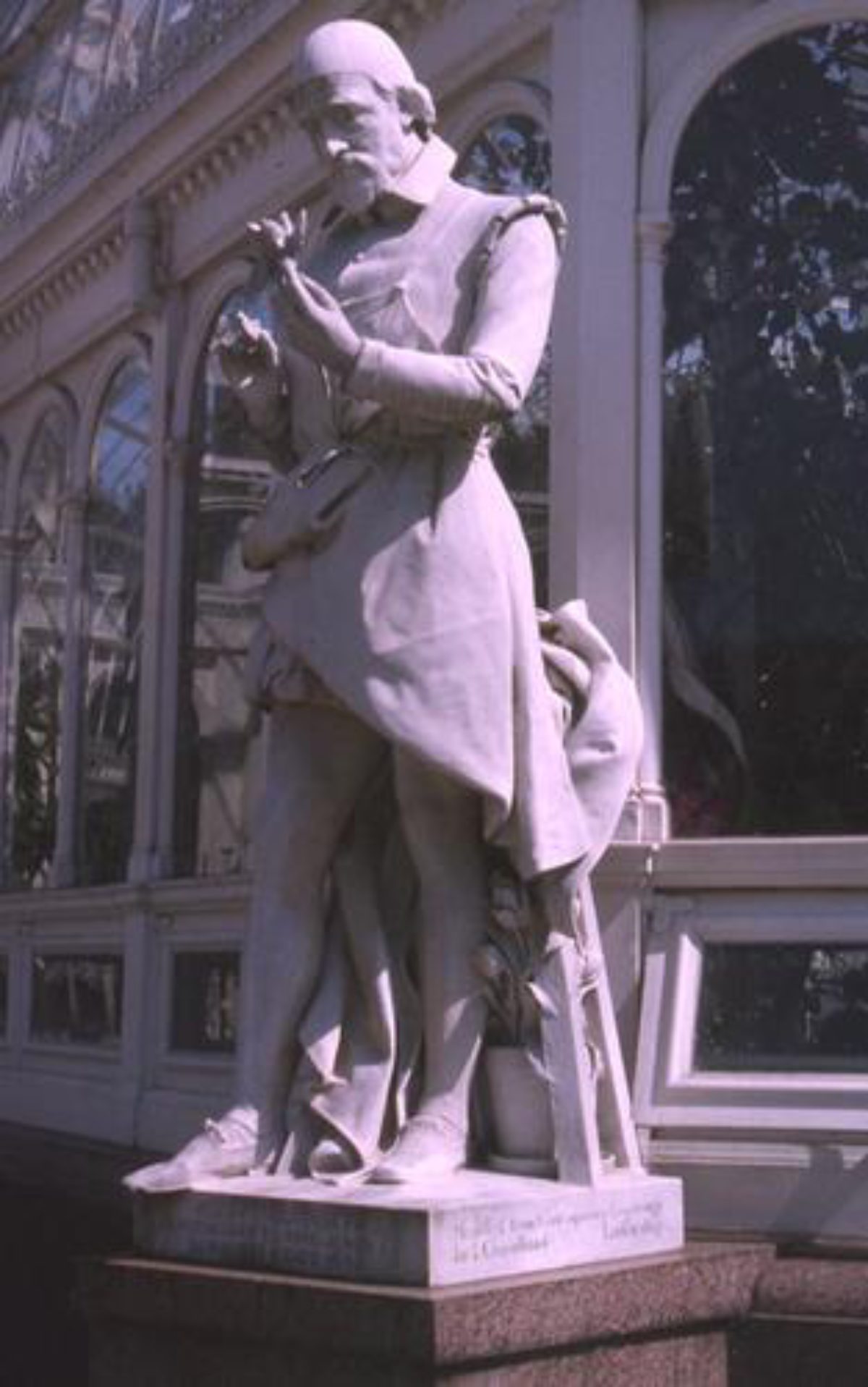 Some 250m west of the junction of Mossley Hill Drive and Ibbotson's Lane is a large conservatory called the Palm House which was designed by Mackenzie and Moncur and erected in 1896 (listed Grade II*). It is positioned on a mound which André and Hornblower had originally intended for a bandstand (Land Use Consultants 1992) within a circular area bounded by cast-iron railings. The Palm House was fully restored and re-opened in 2001. Statuary around the Palm House was restored in the project and includes both internal pieces and eight external figures depicting scientists, explorers, artists etc. Views across the park are obtained from this building and it can be glimpsed from a variety of different positions. Some 30m south of the Palm House, on a promontory overlooking a stream, is a statue of William Rathbone (1787-1868), the Liverpool politician and social reformer, by J H Foley (1874-7, listed Grade II). The plinth on which it stands had inset panels with inscriptions and reliefs.