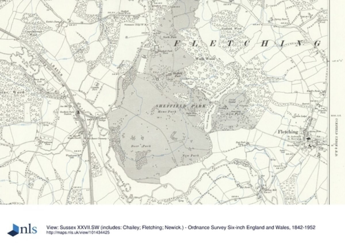 The park divides roughly into three main areas. North Park lies between the house and the site's northern boundary. It is laid down to open pasture with one or two clumps and a few individual trees. South-west of the house the Home Park extends to the site's southern boundary. It is under arable cultivation but retains a number of sizeable clumps and a few individual trees. A medieval park existed at Sheffield Park although its extent is not clear. Scalé's map of 1774 shows a pattern of parkland planting in the North and Home Park of which much is still shown on the OS 3rd edition published in 1911. Some of the trees surviving in the 1990s appear to correspond to the C18 layout. There is evidence to suggest that Brown's work included felling to improve the parkland landscape (NT guidebook).