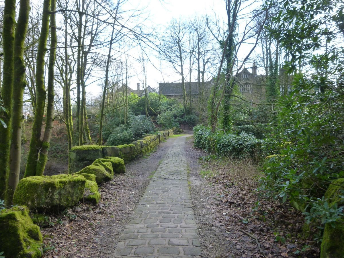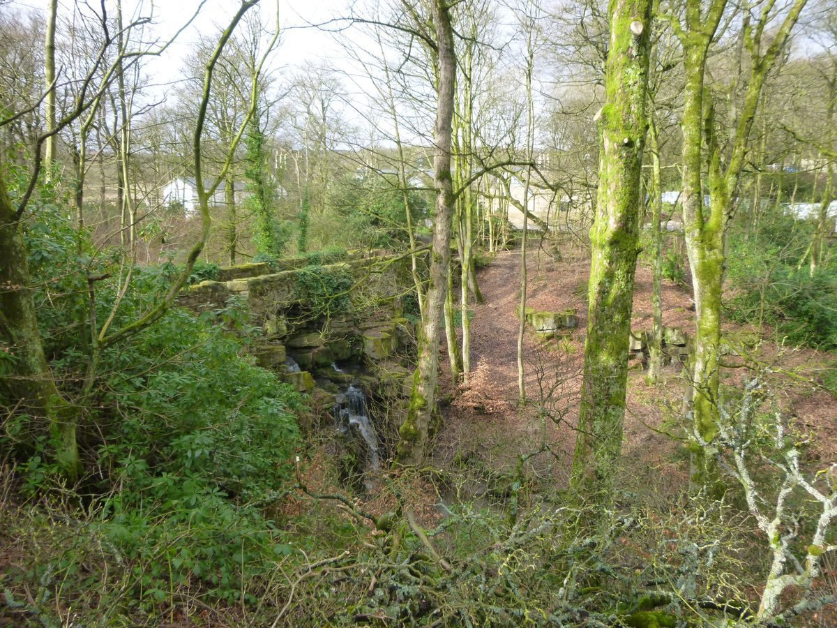 A path from the courtyard on the north side of the Hall leads northwards to a small lake with a rustic bridge and cascade on its east side. Large irregular rocks placed alongside the path are similar to those used for the cascade. The lake is shown on the 1850 OS map but not on the 1769 estate map. The route over the bridge leads to the stables. The bridge and cascade could be contemporary with the formal garden and stables, but it is possible that they were in existence before this date and incorporated into the later C19 works. Paths lead in an easterly direction alongside the watercourse, which runs eastwards to join the Raveden Brook c 200m east of the Hall. A C19 footbridge with a rustic arch which crosses the stream is the only intact survivor of a number of similar bridges, the footings for which can be seen along the route. These have largely been replaced by late C20 footbridges. The valley is planted with mature trees and there is an understorey of rhododendron. The Raveden Brook flows into the Dean Brook at the south-east corner of the site and paths continue westwards through woodland alongside Dean Brook to a point c 500m south-east of the Hall where there is a large pond, shown on the 1893 OS map. A smaller, elongated stretch of water shown to the east of this pond on the 1850 and 1893 OS maps has disappeared. The 1893 OS map shows paths continuing to Smithills Dean Road and across the park, but these have been disrupted by development within the parkland (see below).