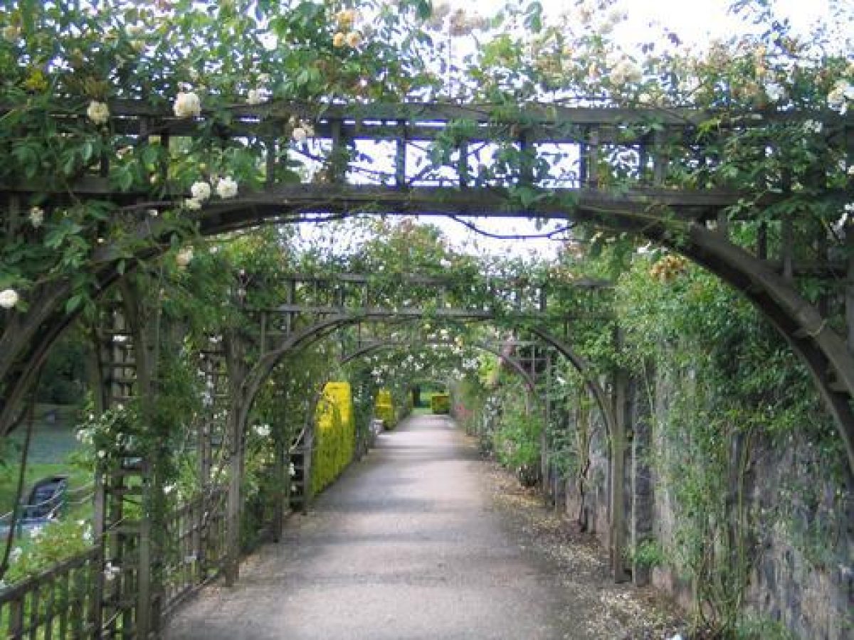- Description: The courtyard gardens have a central walk with pleached limes, planted in 1901.