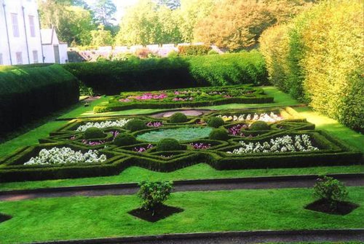 There are several inter-connecting compartment gardens on the north side of the house. These are divided by walls and hedges. The formal garden areas include the knot garden (dating from 1950), herb garden (dated to 1901), the mulberry grove and, nearest the house, the parterre or Dutch garden. There is a Rosery east of the herb and knot gardens. This was restored in 1998-99.