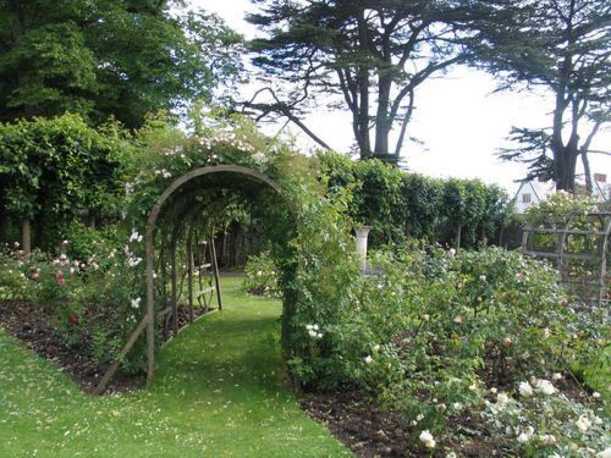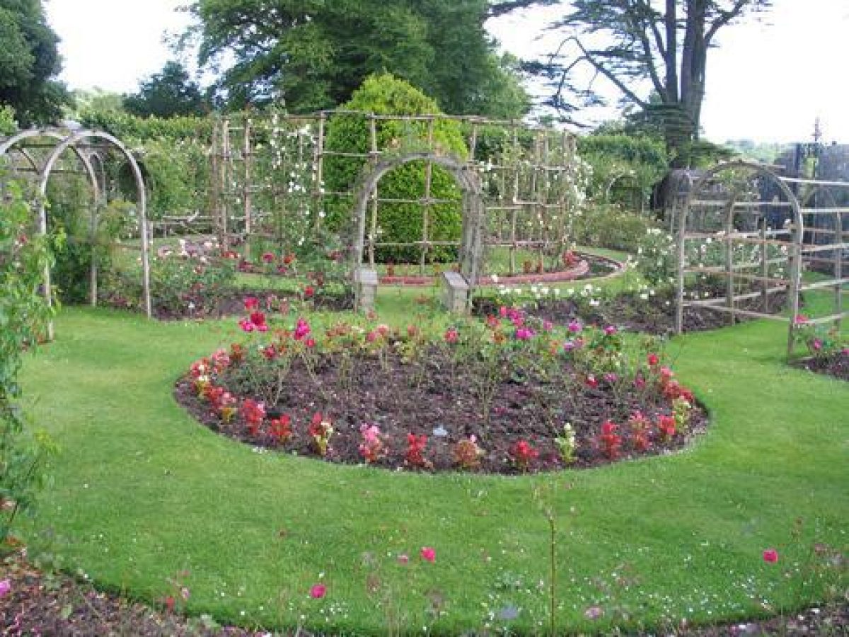 This formal Victorian rose garden has geometric rose beds centred upon a terracotta tiled circular canal surrounding an arbour of bay. There is an avenue of limes at the south end of the garden, and a wrought iron gate in the west wall. It was restored with the help of the Welsh Historic Gardens Trust to celebrate its centenary in 1999. Roses were donated in comemmoration of loved ones, and plaques record the donors.