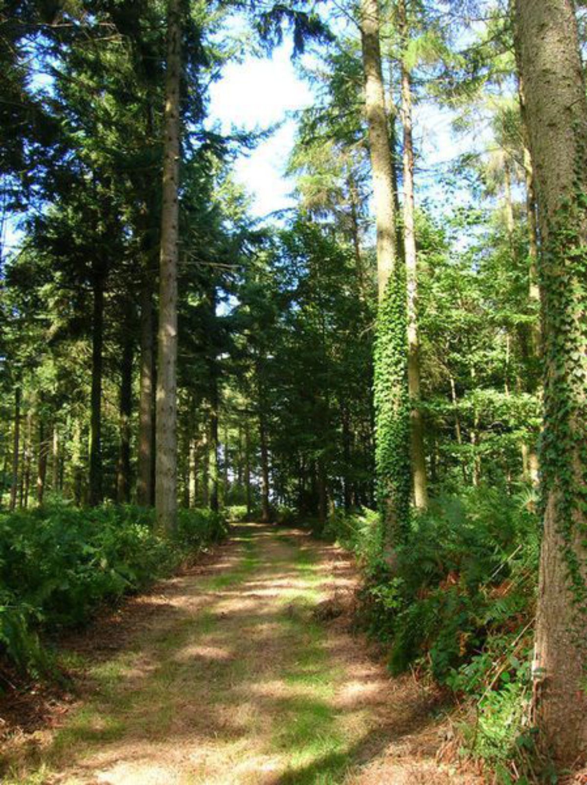 On the east side of Forestside Road, the parkland is enclosed to the north and west by plantation woodland compartments including Firtree Piece and Forest Hanger, both shown on the plan of 1785. West of the road, the remainder of the site is occupied by Stansted Forest which has its origins in the C13 Forest of Bere and which is now (1998) largely planted with varied compartments of sweet chestnut coppice (classified by English Nature as semi-natural, broadleaved woodland) and coniferous plantations. The Forest is cut by a broad, grassed, east to west avenue, some 2km long, which forms the central radial of the goose-foot pattern focused on the west front of the house and which appears to have been cut between 1680 and 1690 (Loudon 1838). The avenue, which is shown on Knyff and Kip's 1727 view, is lined with avenue trees of mixed age, the beeches on the north side at the west end surviving from Lewis Way's replanting in 1820 (CBA 1995). To the north, the Forest is cut by the north-west running radial of the goose foot, the north-west end of which was linked by 1785 to the central avenue by the south-running Broadwalk. This avenue, which focused on a vista south to the coast, was lined with a beech avenue until the trees were felled in the mid 1970s and is now (1998) overgrown. The former avenue to the south-west which completed the goose foot has now gone.
