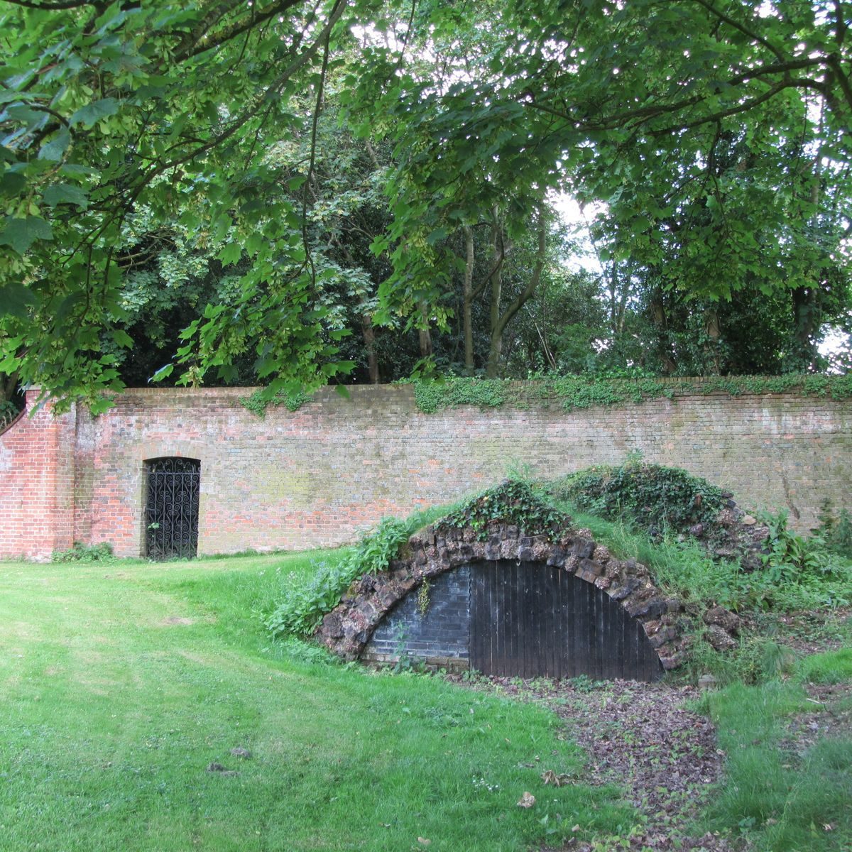 - Description: C18 red brick with C19 buttressed top section. 10/11 ft high. Semicircular entrance with stuccoed walls and brick piers.