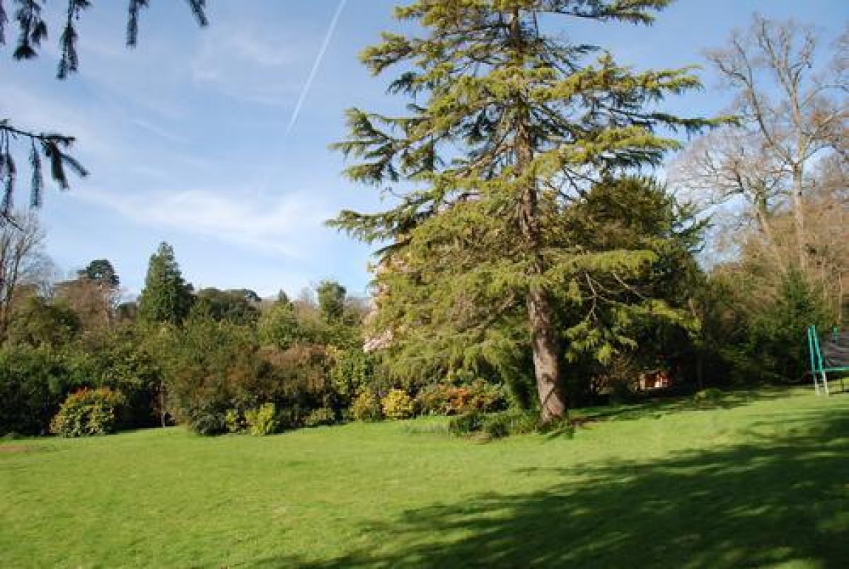 The shrubbery and woodland garden comprises mature ornamental trees and conifers underplanted with evergreen shrubbery and a collection of C19 and C20 rhododendrons. The shrubbery is planted on south- and south-west-facing slopes and screens the kitchen garden to the north-east and the Luscombe Castle kitchen garden to the north. Walks pass through the shrubbery, while the riverside walk leads north, away from the river, before turning south-east to return towards the house. Some 100m north-west of the house the walk passes an informal, approximately elliptical pond which corresponds to a feature shown on the Tithe map (1839). The walk continues beyond the pond to reach the western terrace adjacent to the north-west corner of the house. The ornamental trees and shrubbery extend across the south-facing slope to the north of the house, where a single mature cedar, the survivor from a group of early C19 cedars, is a prominent feature.