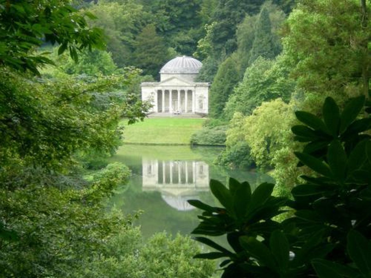 Stourhead is an 18th-century landscape garden, with a lake and woodland of 16 hectares, set within a larger estate of park, wood and farmland. The lake is surrounded by a series of classical temples and follies.