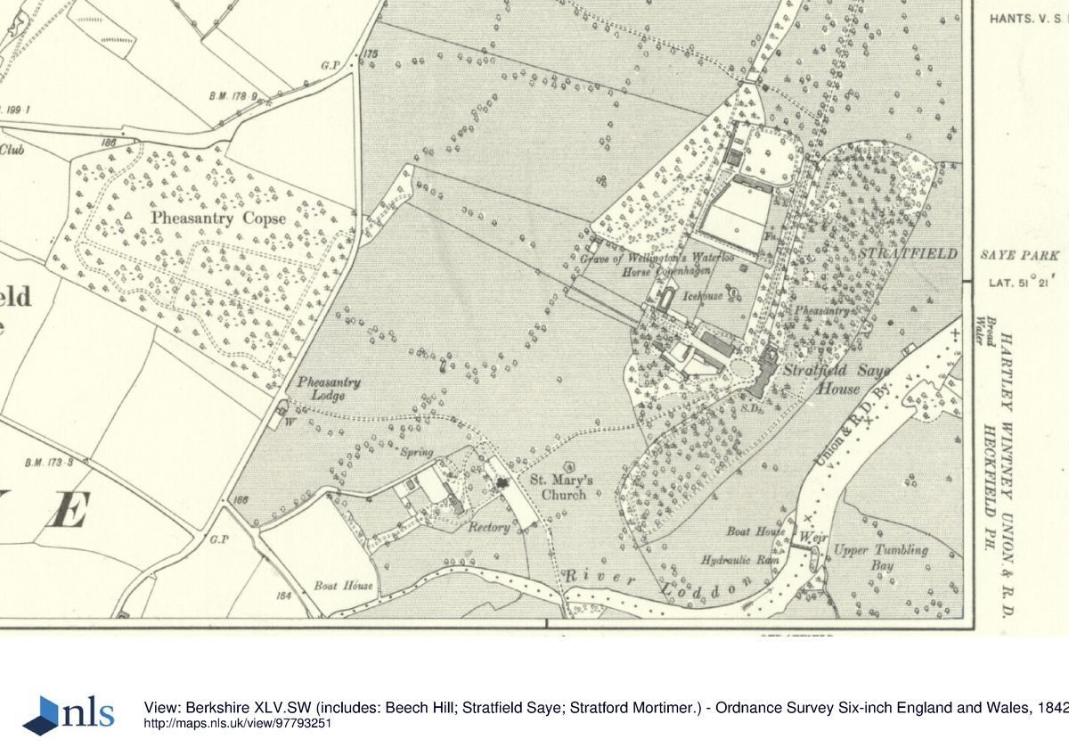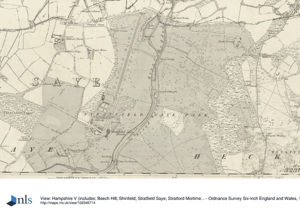 A manor was formed at Stratfield Saye in the C11 and was owned by the Stotefield family in the C12. It acquired its present name by the marriage of a Stotefield heiress to Robert de Say. William de Say was granted a licence to inclose his wood to form a park in 1216 and by c 1340, a house had been built there (VCH 1911).
