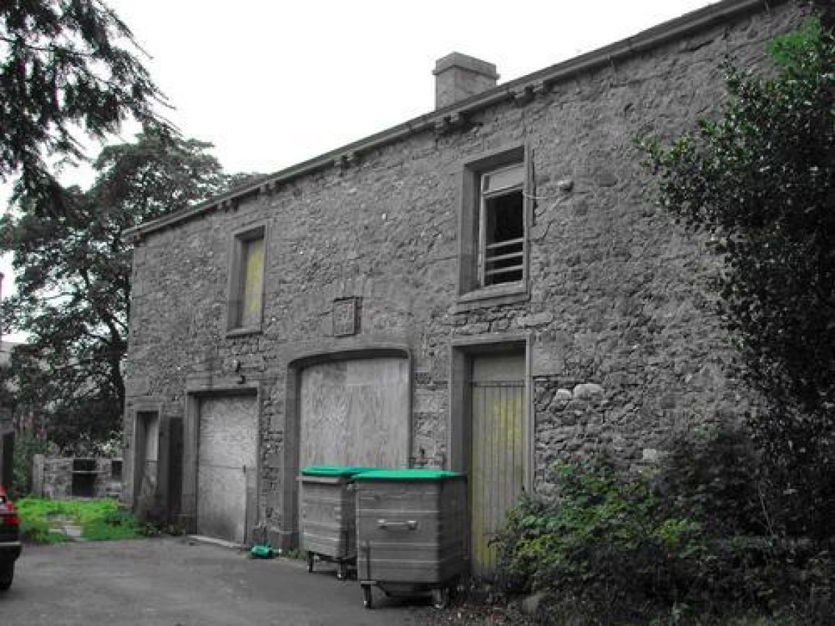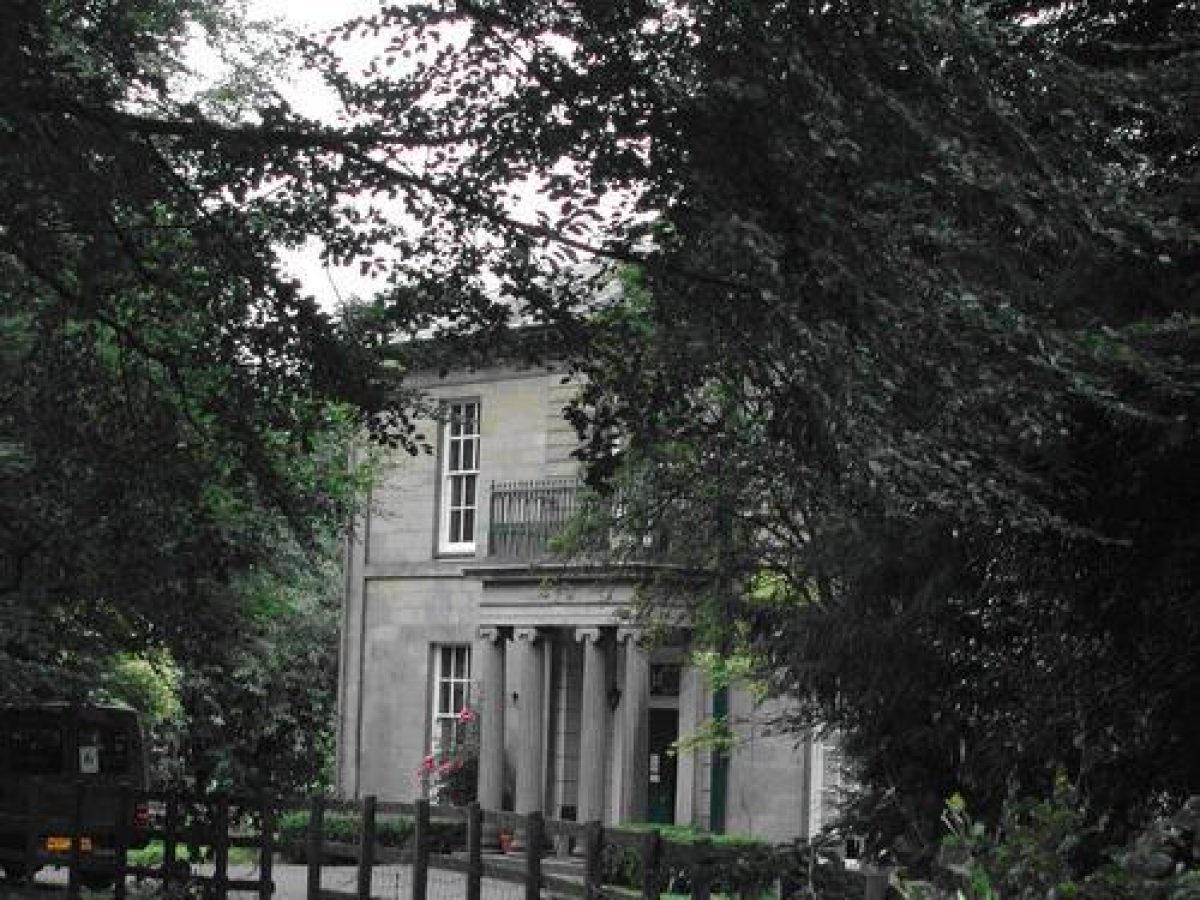 Other buildings include a former servants' cottage and sheds. The trees in this area are mainly sycamores with an avenue along the northern