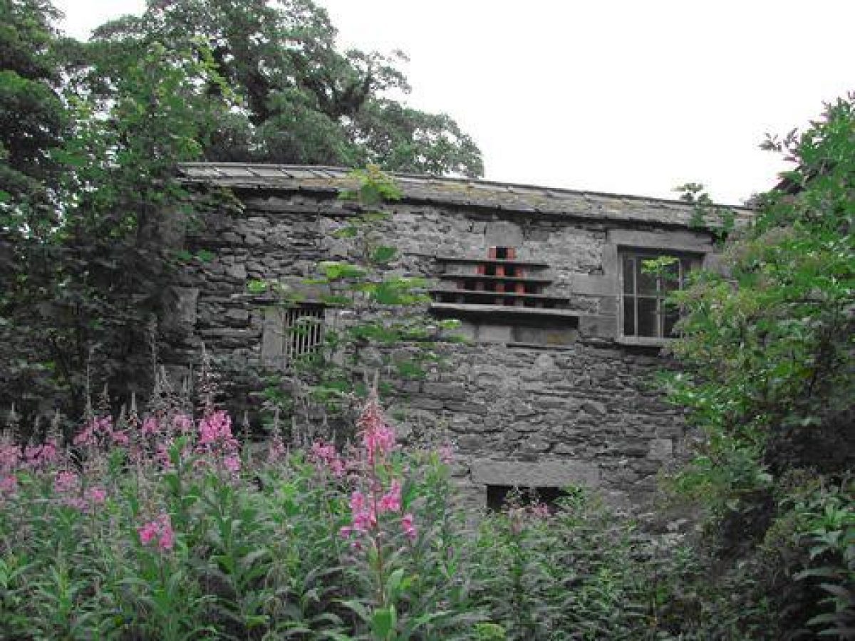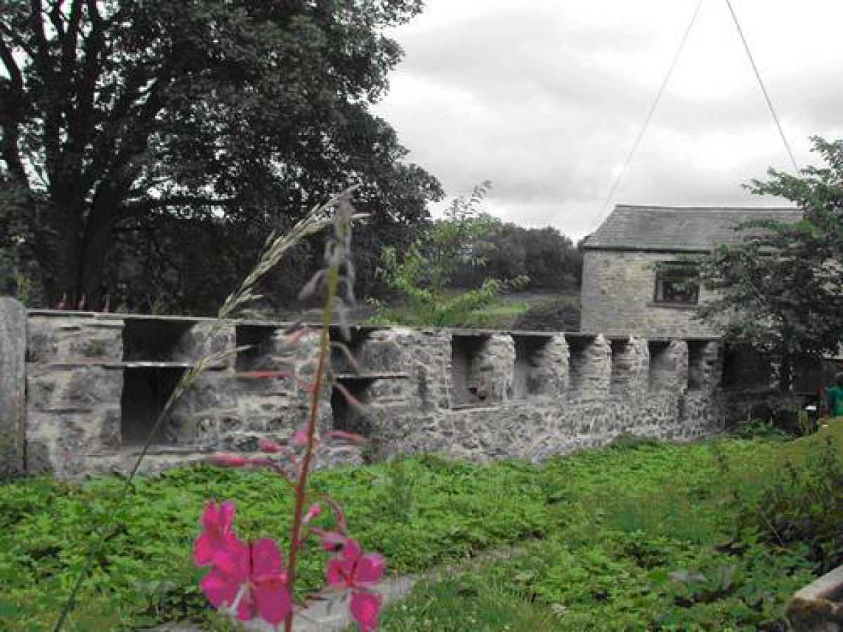 coach house and facing east is a free-standing section of wall containing 14 bee boles. To the west of this wall is a small building