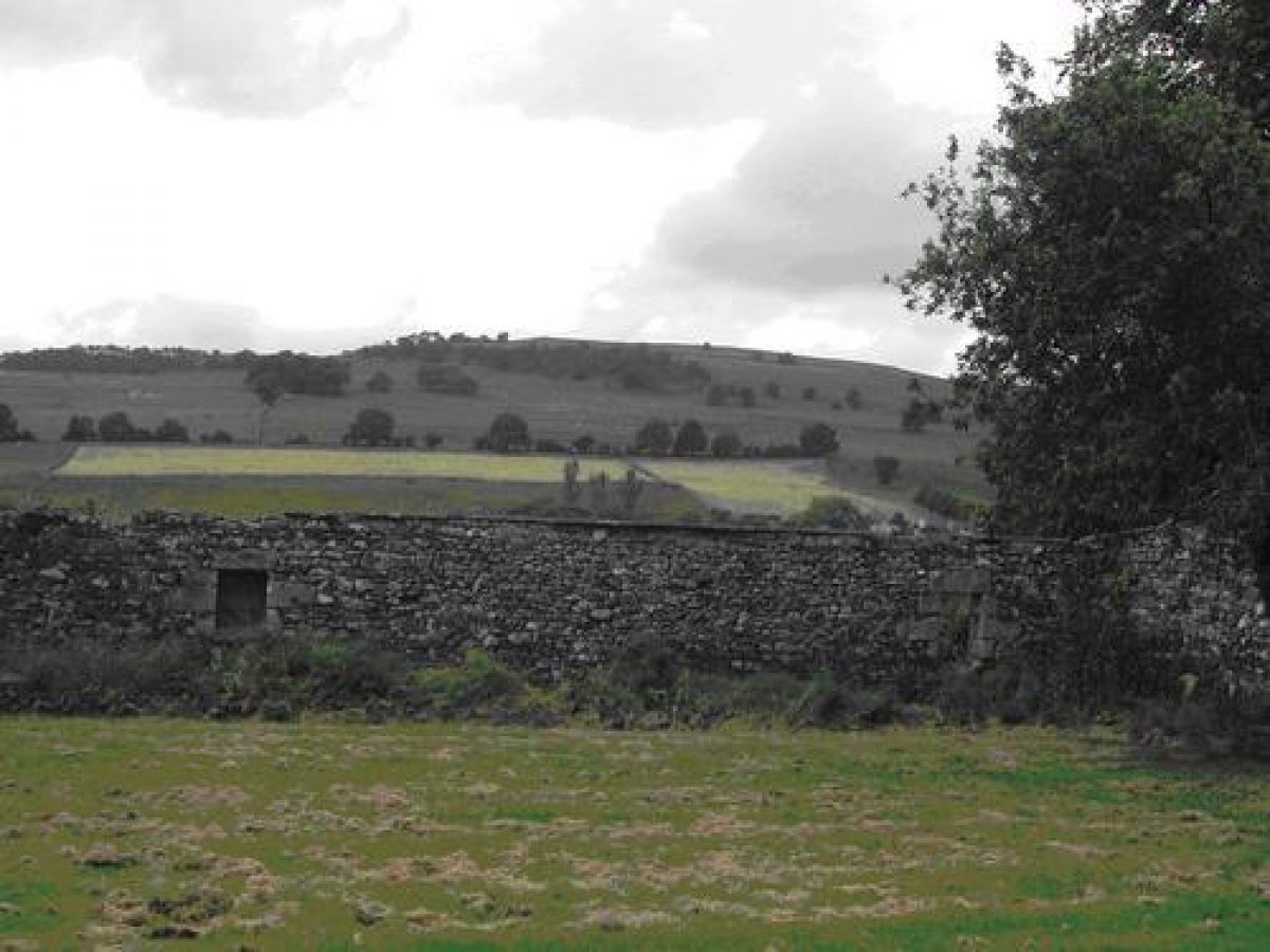 A ha-ha separates the garden to the south of the house, from the adjoining pasture. This indicates the planning of the site to provide uninterrupted views from the principal room of the house. The room from the house to the south is now obliterated by large copper beech. Some of the lower branches could be removed to help restore the view. There are also sycamore and cherry trees. The cherries are short-lived and may die soon, whereas the sycamore could be removed. The walls on the north and west boundaries which enclose the service part of the site are of dry-stone walling like that of the surrounding fields.