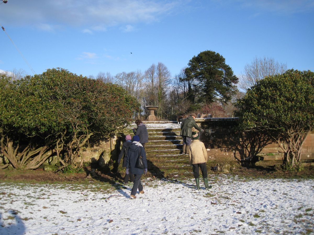 In 1833 a gardening tour described in the Gardeners’ Magazine included Terregles Mansion. It was noted that some additions to the house were being made and that the park had been sprinkled over with single trees, arranged equidistantly in complete contrast to natural grouping. These trees were chiefly oaks from 20 to 30 feet high, which had been moved in the preceding two years, almost all surviving. Adjoining the house was an old architectural garden, consisting of a level square platform with thick, lofty, hornbeam hedges and on two sides a broad grass terrace, between 20 and 30 feet higher than the exterior grounds. There was an unusual view from the terrace to a new kitchen garden, on a gentle slope backed by woods. The garden was in excellent order and the author felt that it should be retained as a garden of fruit and flowers, rather than undergoing routine improvement into a pleasure-ground.