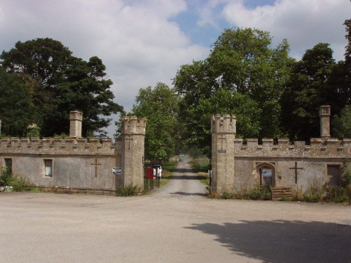 The south approach enters the park 1.3km south-west of the house, through a gothic, stone gateway with flanking lodges (c 1830s, possibly D Harris and R Abraham, listed grade II), the whole composition facing south-west along the B4012. The gateway is flanked by octagonal piers with battlemented tops, supporting wrought-iron gates with gothic tracery, attached to battlemented screen walls leading out to the small lodges concealed to the north of them. From here the south drive curves north-east, joining the north drive where it turns east 250m from the main front of the house.