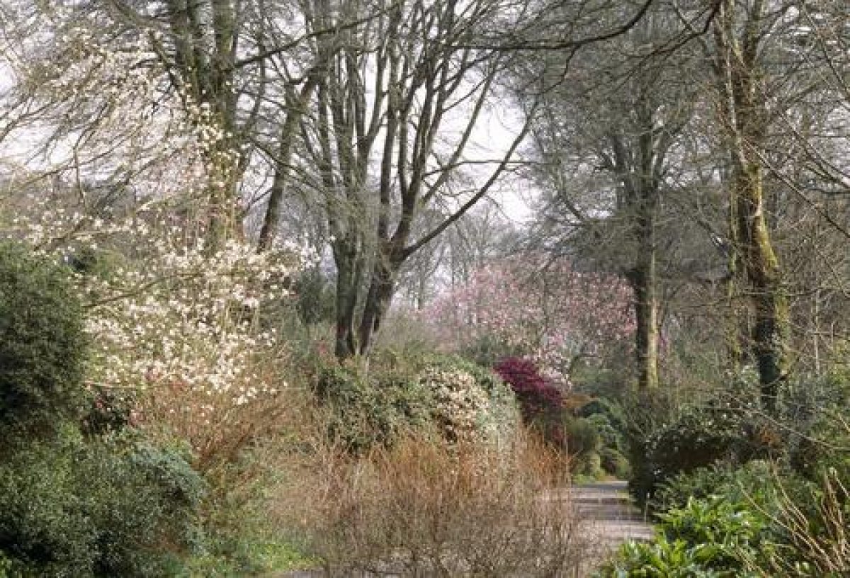 The site rises from the south and south-east towards the house and parkland to the north, while about 400 metres west of the house a steep-sided valley and stream run from north-west to south-east.There is an extensive collection of woody plants, many of which are tender thanks to the sheltered position of the site and the Gulf stream.