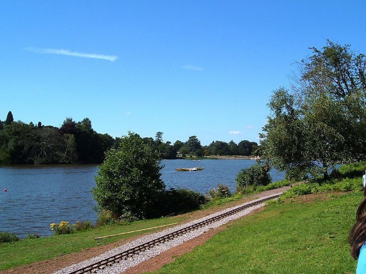 Running parallel with, and c 50m east of the east edge of the lake, is the River Trent, here c 15m wide. Between the two is a drive, set back from the lake edge within trees and shrubs in the 500m approach to the south-east side of the pleasure grounds. It leads to a C20 fishing lodge at the south end of the lake. Also within the trees and shrubs on the east bank of the lake, 200m from the north-east corner, is a modern boathouse group. The east boundary of the park lies c 250m east of the River Trent; between the two is rough grassland.