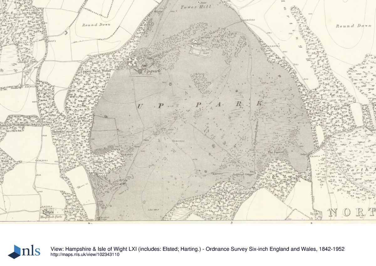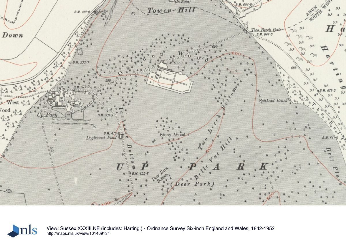 The site lies high on the crest of the South Downs, its undulating landscape of broad-backed ridges and dry, steep-sided combes falling south-westwards from Tower Hill in the north-east corner.The following is from the Register of Parks and Gardens of Special Historic Interest. For the most up-to-date Register entry, please visit The National Heritage List for England (NHLE):