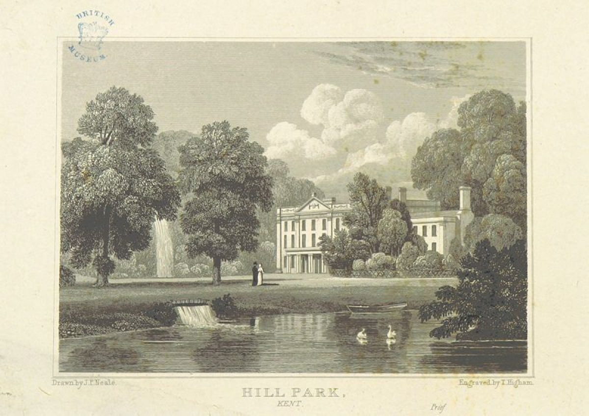 In 1771, Valence (including Parris and Gillmans farms) became the property of the Earl of Hillsborough (1718-93) who undertook a major development of the estate and its landscape, involving the landscape architect, Lancelot Brown (1716-1783) and his future son-in-law, Henry Holland junior (1745-1806) with whom, by 1773, he had formed a business partnership (Jane Brown). By 1775, Hillsborough had changed the name of the estate from Valence to Hill Park, and the adjoining land (Parris and Gillmans farms) became Hill Park Farm. Between December 1772 and June 1775, Lord Hillsborough paid Brown the sum of £1,200 (with an outstanding debt of £50) in respect of a commission relating to Hill Park (Brown's personal account book and Willis). Substantial refurbishments were made to the existing house which included some architectural improvements (Holland's account books, 1767-1782). The construction of various outbuildings, including a model dairy at the eastern end of the lime avenue, was also undertaken. Holland's sketch book depicts the interior of the dairy, designed for Lady Hillsborough and dated 7th July 1777 (photocopied extract of Holland's sketch book) and a C19 sketch and photograph illustrate its classical architecture (archive illustrations).