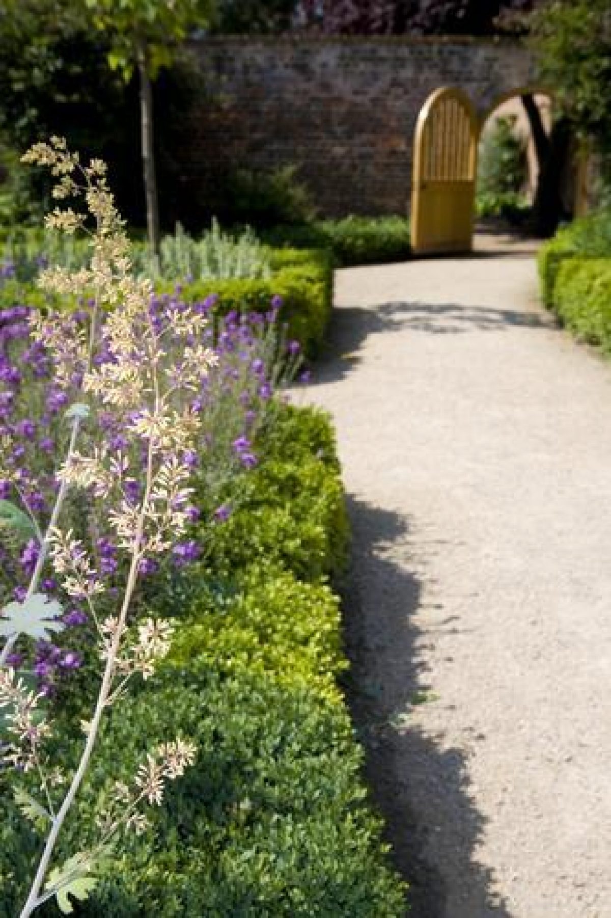 The kitchen garden is located 60m to the north-east of the House. In the north-west corner of the kitchen garden is an early to mid C18, two-storey, octagonal dovecote (listed grade II with the garden walls) in plum brick with red-brick dressings. The dovecote has ogee windows at first-floor height and a slate roof. The kitchen garden is bordered by the dovecote and outbuildings on the west side and by 3m high brick walls to the north and south. The kitchen garden was originally open on the east side, giving views over the Long Water but is now (1998) fenced due to the instability of the walls. The kitchen garden is in two parts: the larger, northern part which was used as a nursery in the C20 and is now derelict; and the smaller, southern part which since the 1870s has been laid out as a formal garden, known as the Parterre Garden. The Parterre Garden is laid out with a formal arrangement of beds bordered by box hedges, with gravel and stone paths. The hedges enclose beds with large yuccas and bedding. In the centre are arches for climbing roses. There are arched entrances in the corners of the west side. The east side is open to the Long Water and towards the east end of the central path is an early C18 Portland stone base for a sundial (listed grade II, the sundial itself now missing). There is a gardener's cottage on the north side of the kitchen garden, with a small walled enclosure to the north, of which the west wall has heating ducts for fruit growing.