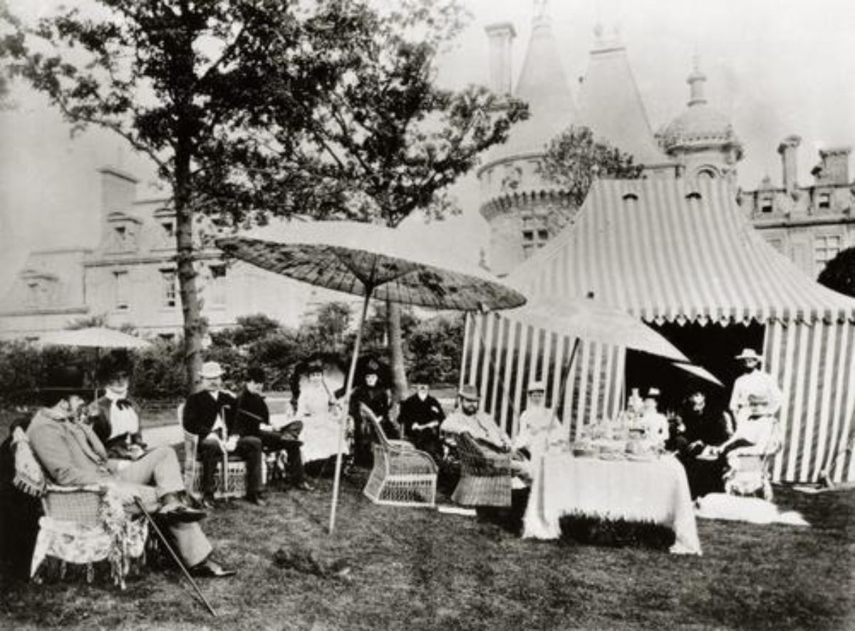 Reports of Ferdinand’s annual ‘Treat’, which appeared in the Bucks. Advertiser & Aylesbury News from 1880 onwards, provide a glimpse of the development of the grounds at Waddesdon. The 23 July 1881 account, which still refers to the property as Lodge Hill, reads: 'The slope on the south side of the mansion is formed into terraces, and several fine statues lend embellishment to the scene. Though the exterior of the fabric has now been completed, only a portion is at present rendered habitable, and it was in this part that the Baron had entertained the Prince of Wales and a select company the previous day. Even the windows have not yet been added to the great majority of the apartments, but temporary boarding cover the apertures. The grounds in the vicinity are laid out in pleasant walks and shrubberies; on the east is a well-formed lawn, on which the Prince and the Baron’s other guests spent the Sunday afternoon, and a little to the east is a large ice-house, the approach to which, arched over with huge and rough blocks of stone, presents a somewhat romantic air. Wandering northward from here the visitor reaches a spot whence the view is no less expansive and grand then that seen from the south.'
