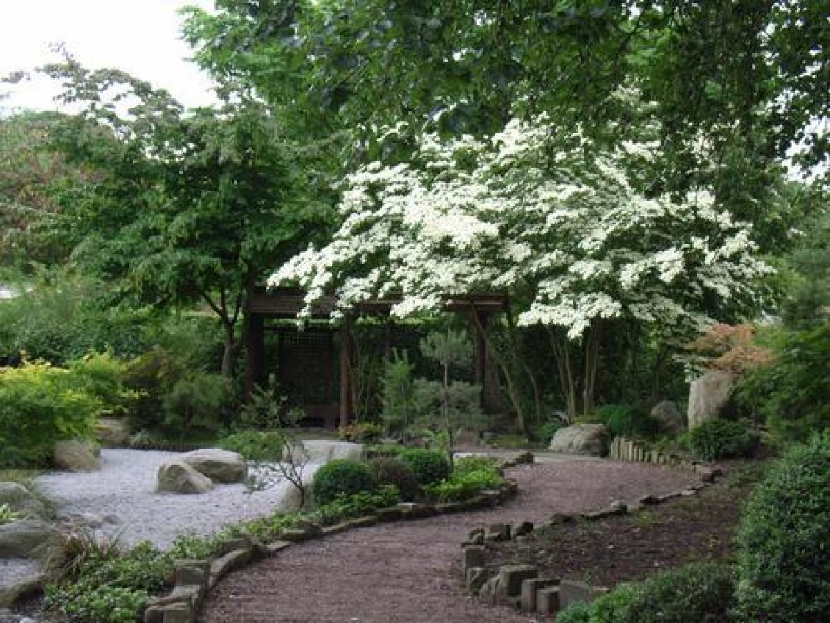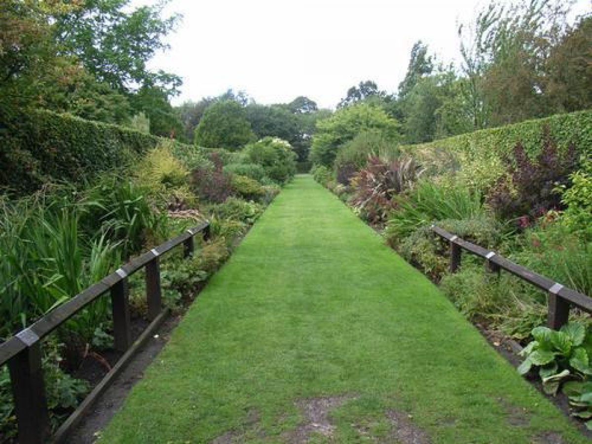 The gardens feature an ornamental grassed walkway, with individual garden 'rooms' attached. Features include a fuschia garden, a Japanese garden and a dovecote re-sited from Sale Old Hall. The site is modelled on Hidcote gardens in Gloucestershire.