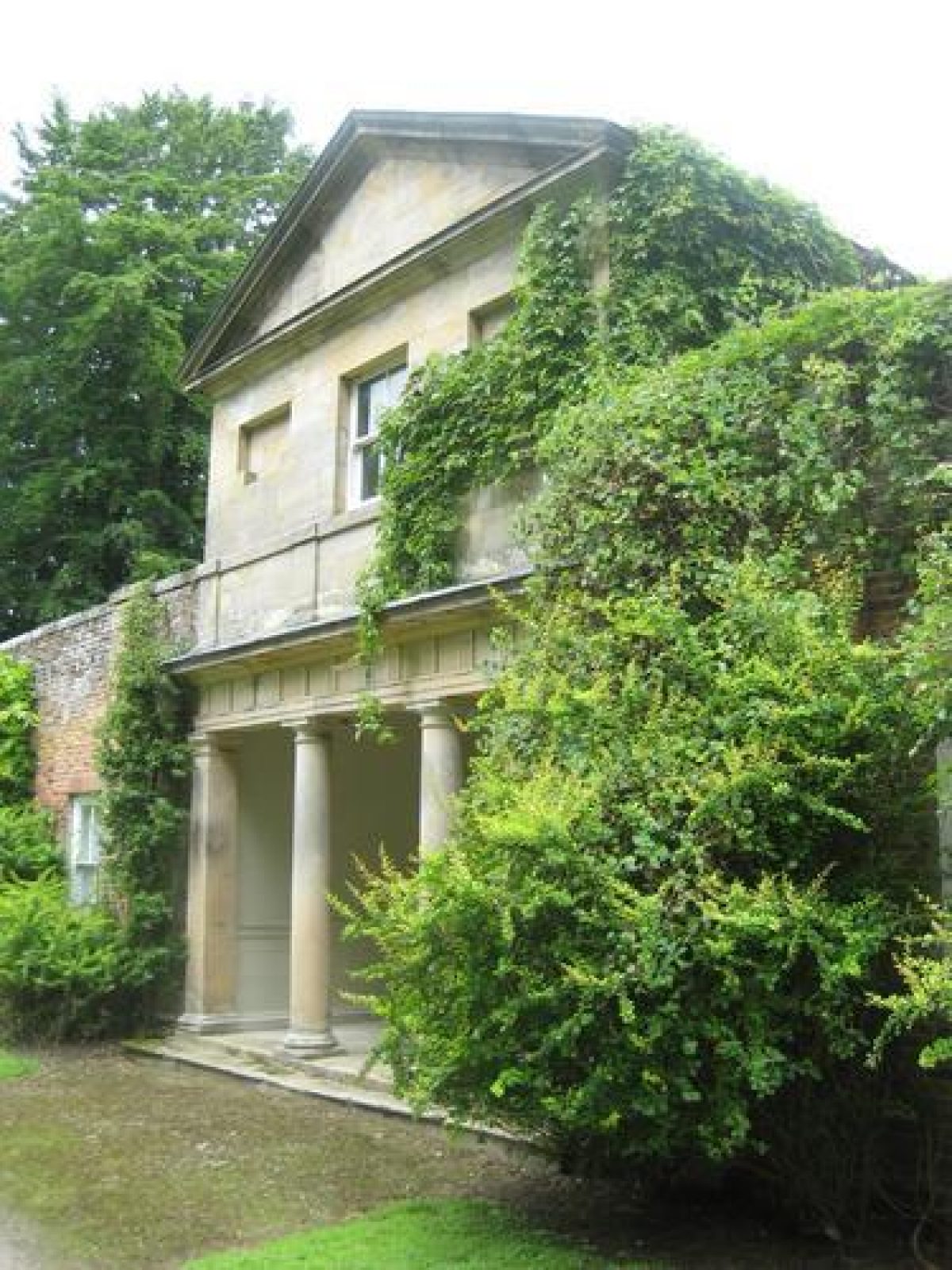 - Description: Portico House, a cottage (c 1750, probably by Garrett, listed grade II) with summerhouse and flanking C17 walls (listed grade II)