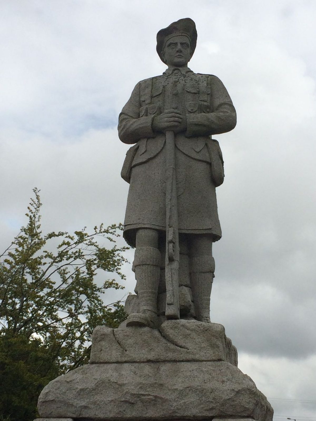 - Description: The memorial consists of a kilted soldier on a tapering plinth and stepped base, constructed in Killembreck granite by Glasgow firm Messer Scott & Rae sculptures and built by local building firm James Patterson and Son.