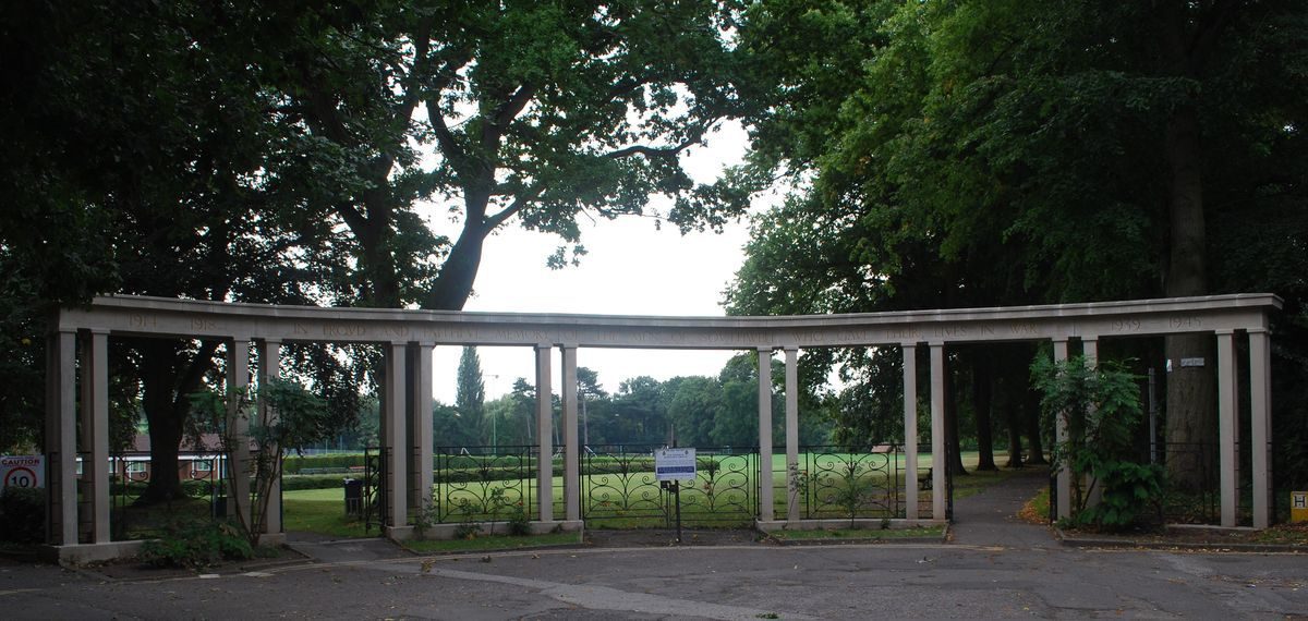 Southwell Recreation Ground features a dedicatory archway. It has wrought iron gates, planting and a dedicatory board in the centre. The site commemorates the fallen of both World Wars.