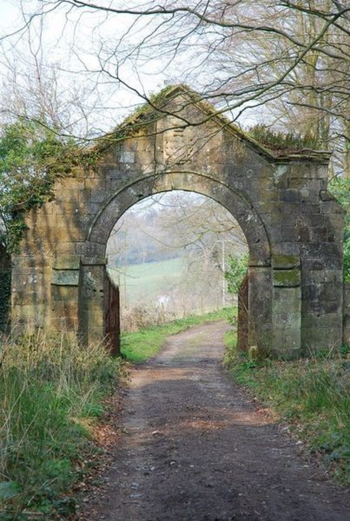 A third entrance (now, 2004, no longer used) is situated on the A30 road at the far south-east end of the site, flanked by Horwood Lodge (C19 with C20 additions). From here a track runs north-west and north through Horwood Bottom and South Hill Copse, where it leads under an early C19 ornamental arch (listed grade II) situated c 900m south-east of Wardour Castle. The stone arch is adorned with the coat of arms of the Arundell family.