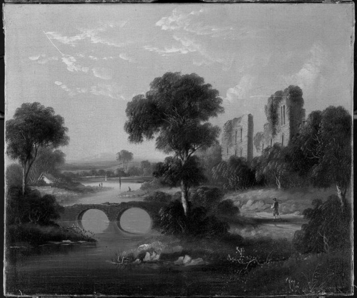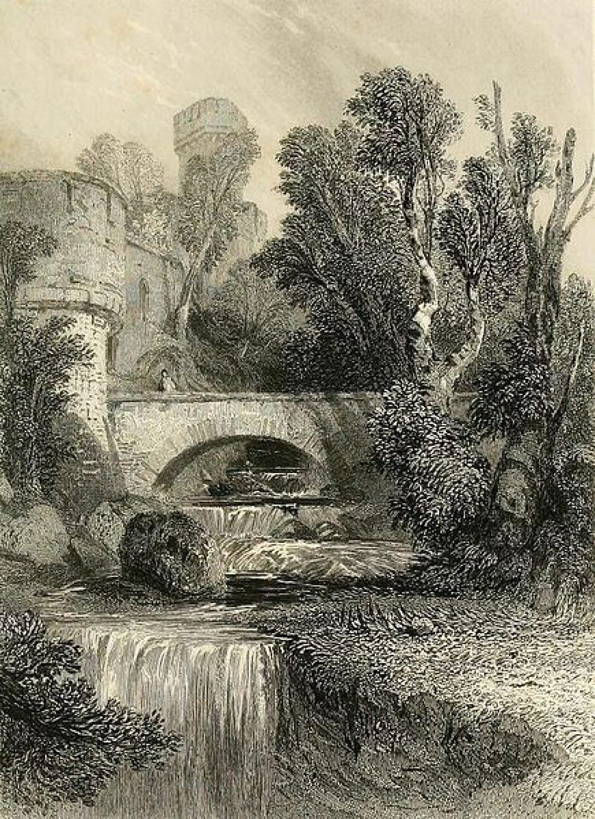 F Harding, Warwick Castle from the south-east, c 1764 (National Gallery of Ireland)