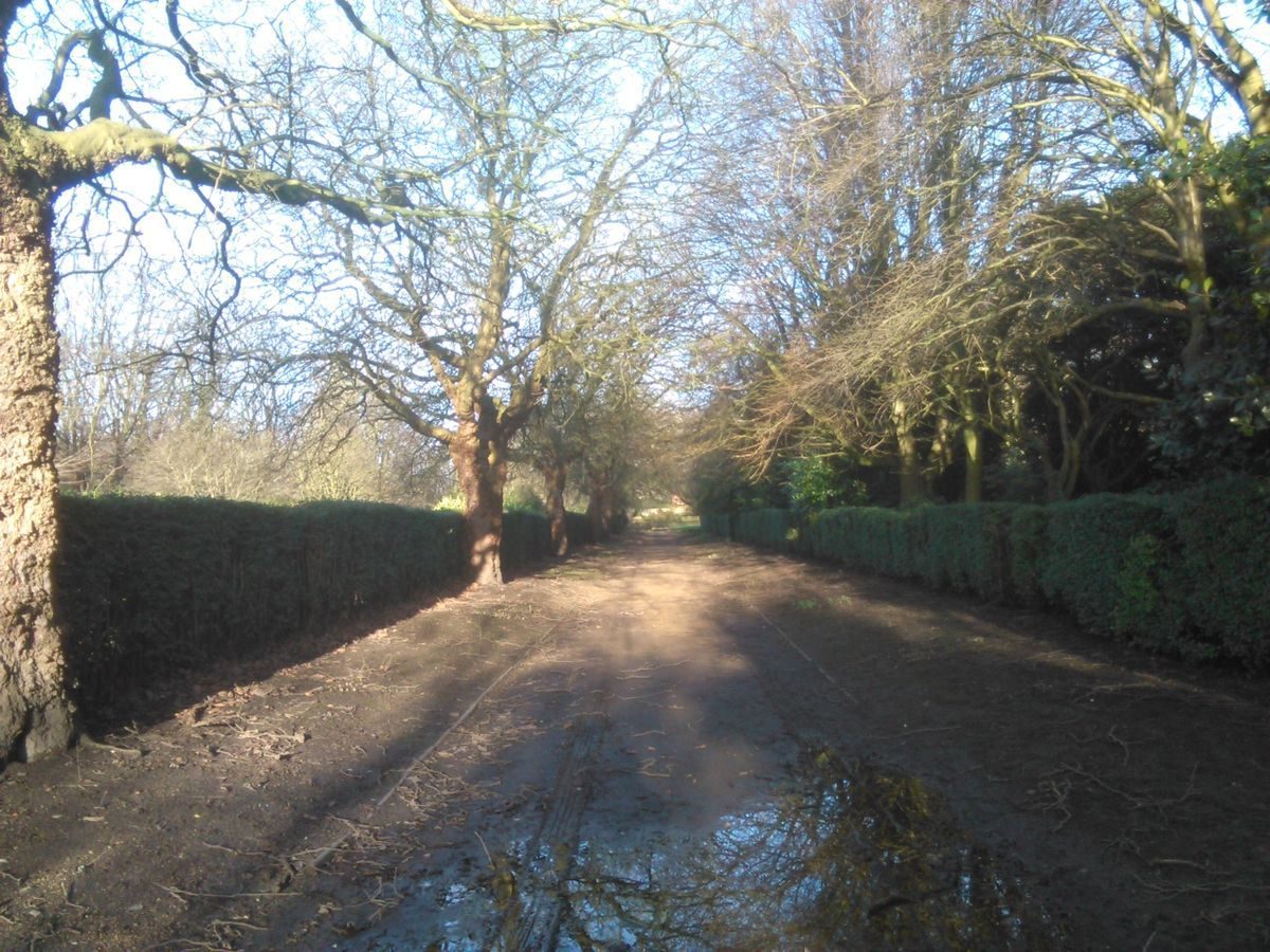 To the west and east of the lawns, two allées run parallel to the main axial path. The boundaries between the allées and lawns are marked by clipped hedges. Flanking the central compartment are two further compartments to west and east. These are laid out as informal lawns with curving paths and grouped shrub planting on raised mounds. In the western compartment, 95m south of the lodge, the outline of sunken, intersecting circular planting beds, now grassed over, is clearly visible.