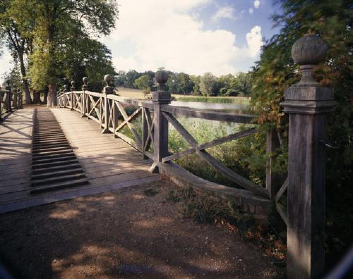 Wimpole Hall sits just to the south of the centre of its park with views radiating from it on crossing north/south and east/west axes. The north park retains many of the features given to it by Lancelot Brown who greatly extended it in this direction. He came to advise the second Earl of Hardwicke from the mid 1760s to the mid 1770s and in addition to extending and laying out the North Park he removed much of the work previously completed by Charles Bridgeman for the second Earl of Oxford and by Robert Greening for the first Earl of Hardwicke. A second serpentine ha-ha (partly by Brown, partly mid 19th century, Listed Grade II) crosses the north park about 250 metres north of the Hall, just to the south of which, close to the western boundary stood an icehouse, no longer extant, built by Flitcroft on Mill Mound. North of the ha-ha lies a string of serpentine lakes, created by Brown out of Lord Radnor's late-17th century fishponds. These are crossed by a wooden Chinese Bridge (of late-18th century design, rebuilt in the late 1970s, Listed Grade II) which leads to a grass slope scattered with trees at the summit of which stands the Gothic-style Folly Castle (Listed Grade II*), designed by Sanderson Miller and built under Brown's supervision by James Essex in 1768-1772. A short length of lime and chestnut avenue, a surviving portion of Radnor's north avenue altered and thickened by later planting, frames the vista to the folly. Park or Home Farm (buildings Listed variously Grade II and II*) lies on the edge of the north park, about 200 metres east of the walled garden and is an unaltered survival of a late-18th century model farm, designed for the third Lord Hardwicke by Sir John Soane.