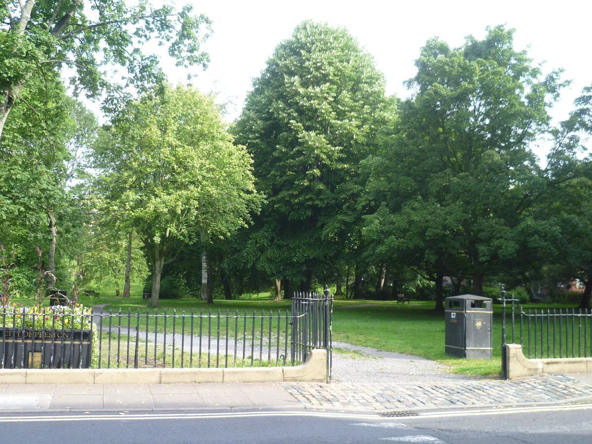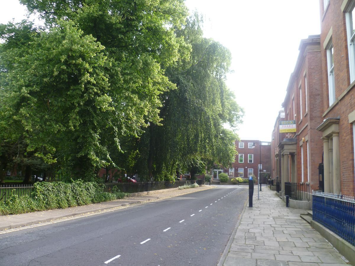 Features of Winckley Square include rectangular divisions and numerous trees.