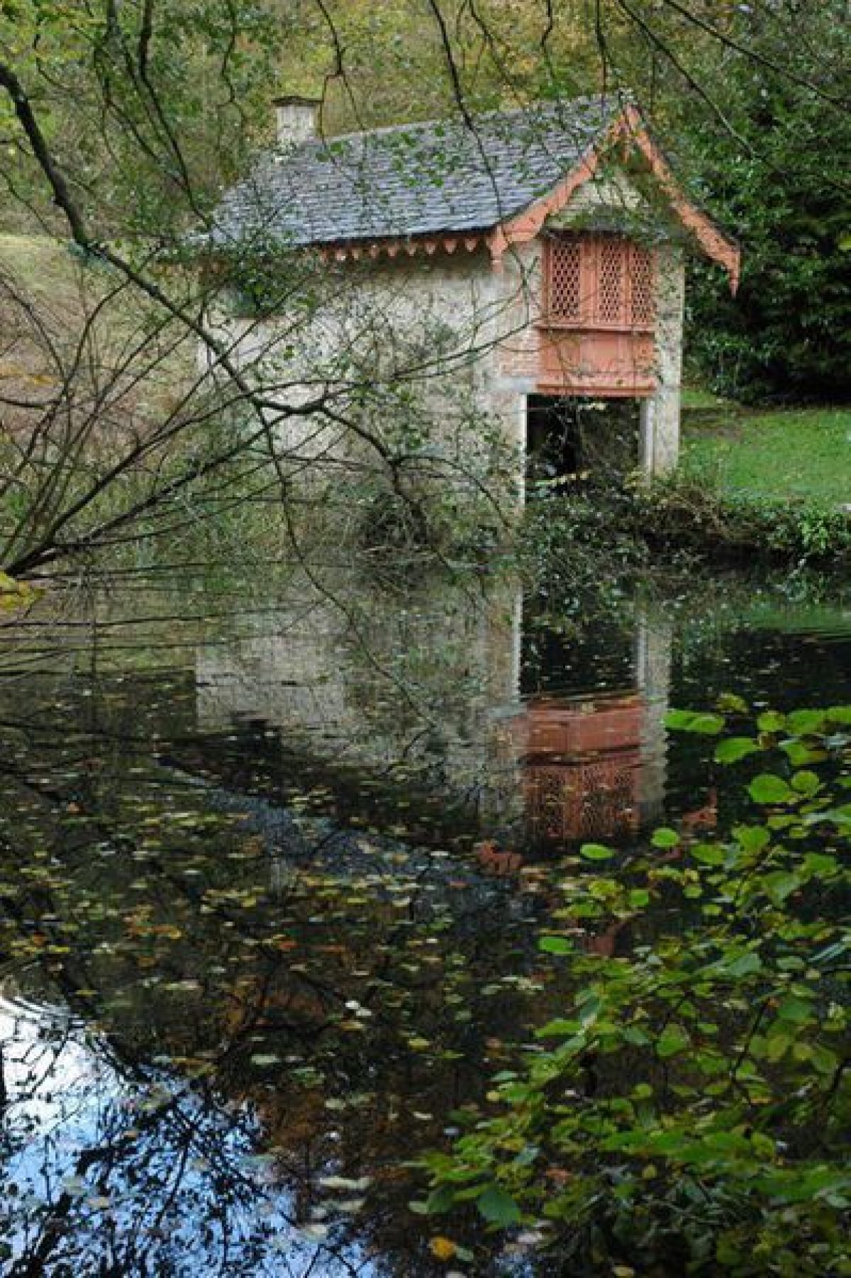 The main feature of the valley is the chain of five ponds along its bottom, retained by massive dams. The ponds were already in existence by 1782 (estate plan). From the west these are Brick Kiln Pond, Old Pond, Middle Pond, Kennel Pond, and Parkmill Pond. The smaller, triangular Honeywell Pond lies north-east of the dam, between Old and Middle Ponds. At the west end of Brick Kiln Pond, close to the site of the C18 circular pool in the Canal Garden, are the ruinous remains of a cascade. At the west end of Middle Pond is an ornate, cottage-like, early C19 boathouse (listed grade II), with a first-floor room with fireplace. South of the east end of the same pool is an open-fronted agricultural building, C18 or C19, and probably for cattle. This is all that remains of the kennels.