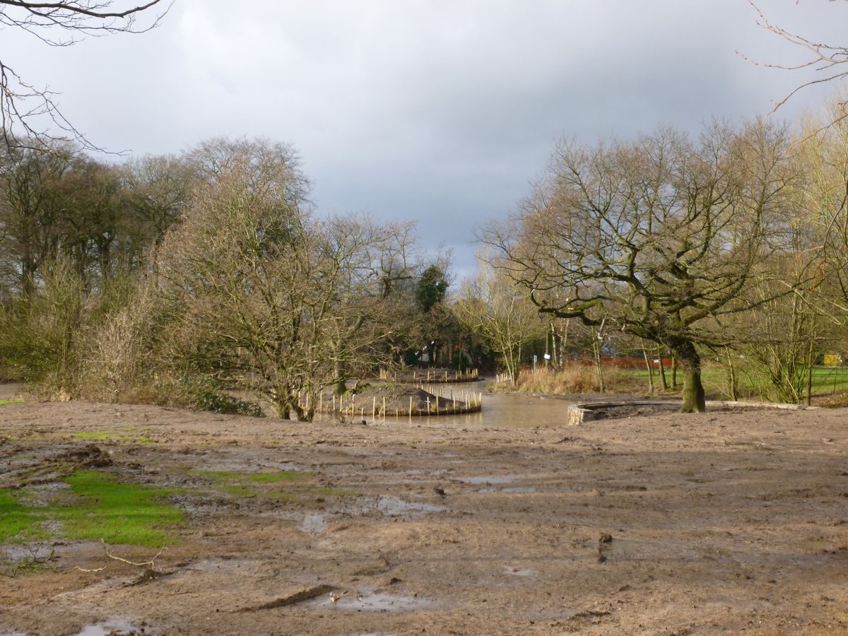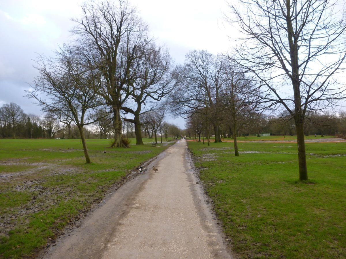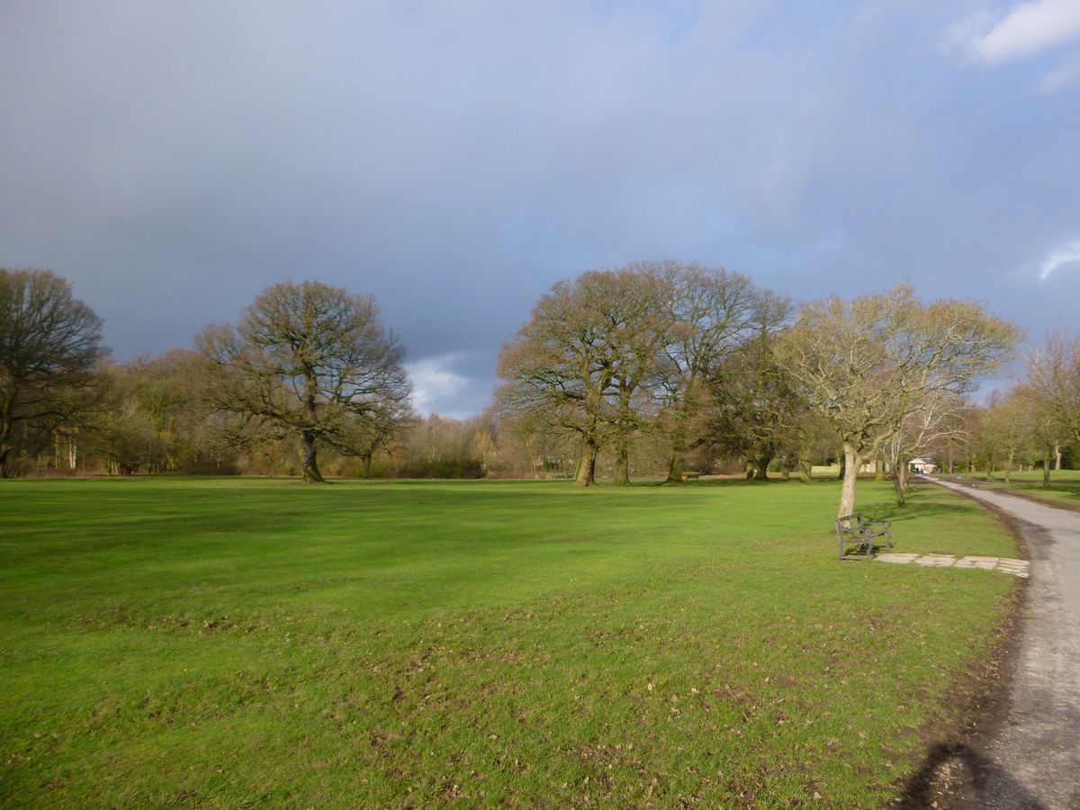 The parkland on the north side of the Hall site has scattered trees which generally conform, on the west side, to the lines of field boundaries as shown on the 1st edition OS map surveyed 1844(6. Also shown on the map is the pond, fringed with trees, which lies c 300m north of the Hall site. It is not shown on the 1725 map, which shows large fields to the east and much smaller enclosures on the west side of this area. This part of the park is used as sports fields, and a range of single-storey changing rooms of c 1975 lies c 150m north of the Hall site. In the north-west corner of the park there is a patch of woodland called Brickfield Wood. A fenced area c 200m north-east of the Hall is occupied by a miniature railway. A car park lies c 500m north-east of the Hall site.