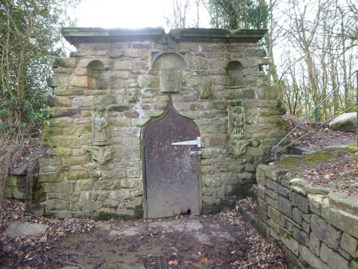 The area immediately south of the formal gardens, consisting of rolling grassland with specimen trees, has been integrated into the pleasure grounds by means of paths which link the formal gardens with walks alongside the wooded banks of the Shaw Brook. One of these paths, from the east side of the formal garden, leads past an icehouse (listed grade II) which lies c 100m south of the Hall site. It is probably of early C19 date and has a stone facade with a central door with an ogee head surrounded by various pieces of applied carved masonry, possibly of the C16 or earlier, including two carved figures. The carvings may have come from nearby St Andrew's church which was partially demolished in 1816, suggesting a plausible date for the structure. The decorative treatment suggests that the building was designed to be a picturesque incident in walks through woodland.