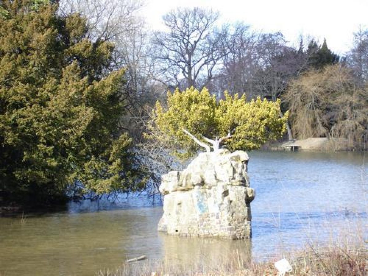 This area of the garden was separated from the open parkland by a ha-ha, which remains intact today. Finally, a large lake fringes the gardens. Map evidence suggests that the lake was constructed from redundant water features connected to the largely defunct iron industry. Along the edge of the lake, James Pulham created a naturalistic island using Pulhamite, which, although overgrown, is still distinguishable today. It is worth noting that a more detailed survey along this stretch of the gardens might yield other features by Pulham.