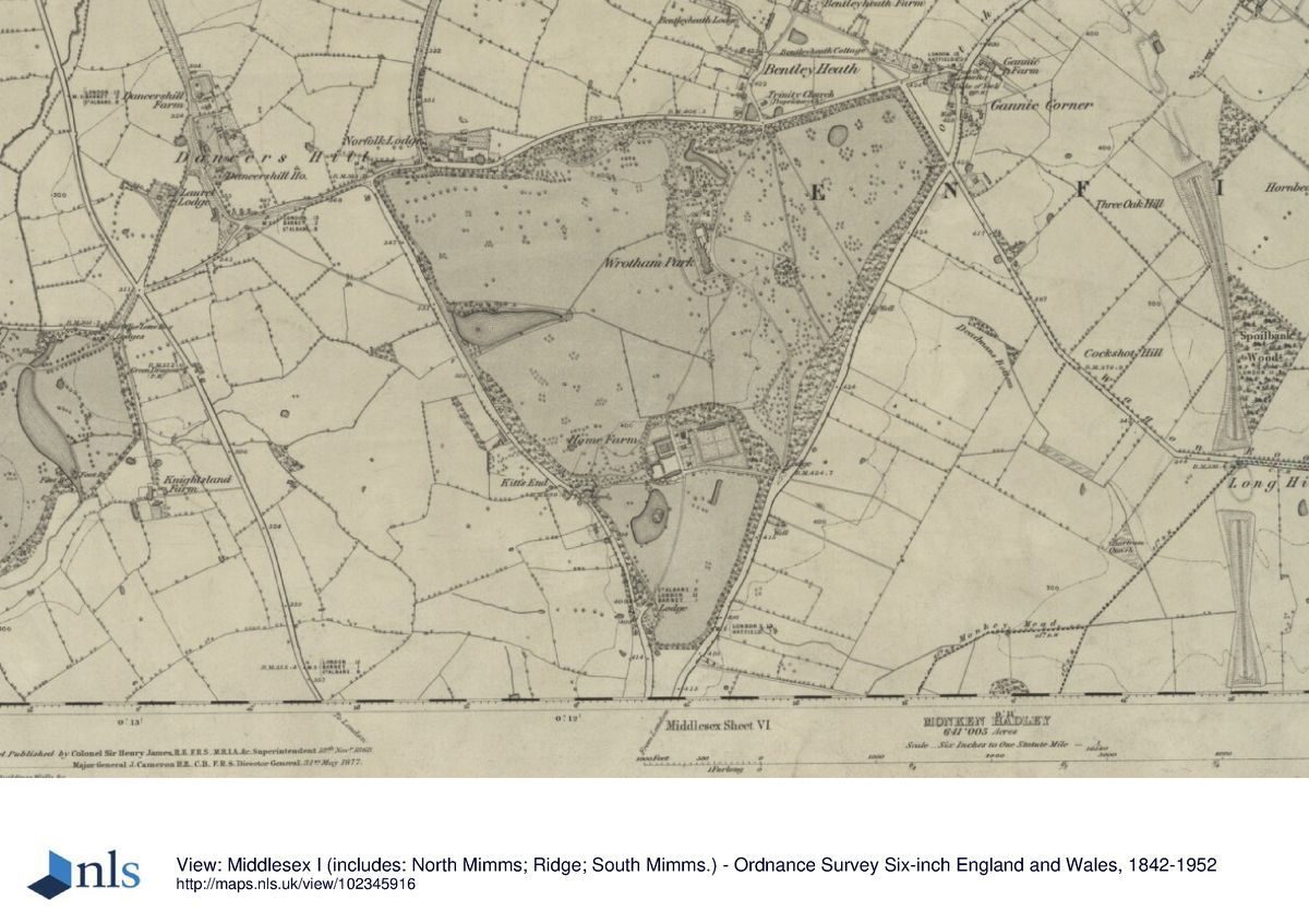 The park was subsequently enlarged in three phases. During the first phase, following the enclosure of Enfield Chase in 1778, George Byng was allotted the area lying to the east of a line approximating to that of the present drive. During the second, early C19 phase, when the park was owned by George Byng II, the highway bounding the north side of the park was diverted to its present position from a point immediately east of Norfolk Lodge Farm to the present Bentley Heath Lodge opposite Bentley Heath Lane. During the third expansion phase, in the second half of the C19, the property then adjoining Wrotham Park to the south was purchased from Mr Barroneau and the substantial house which it comprised was demolished and the present farm buildings erected in its place in 1855 (R Byng pers comm, August 2000).