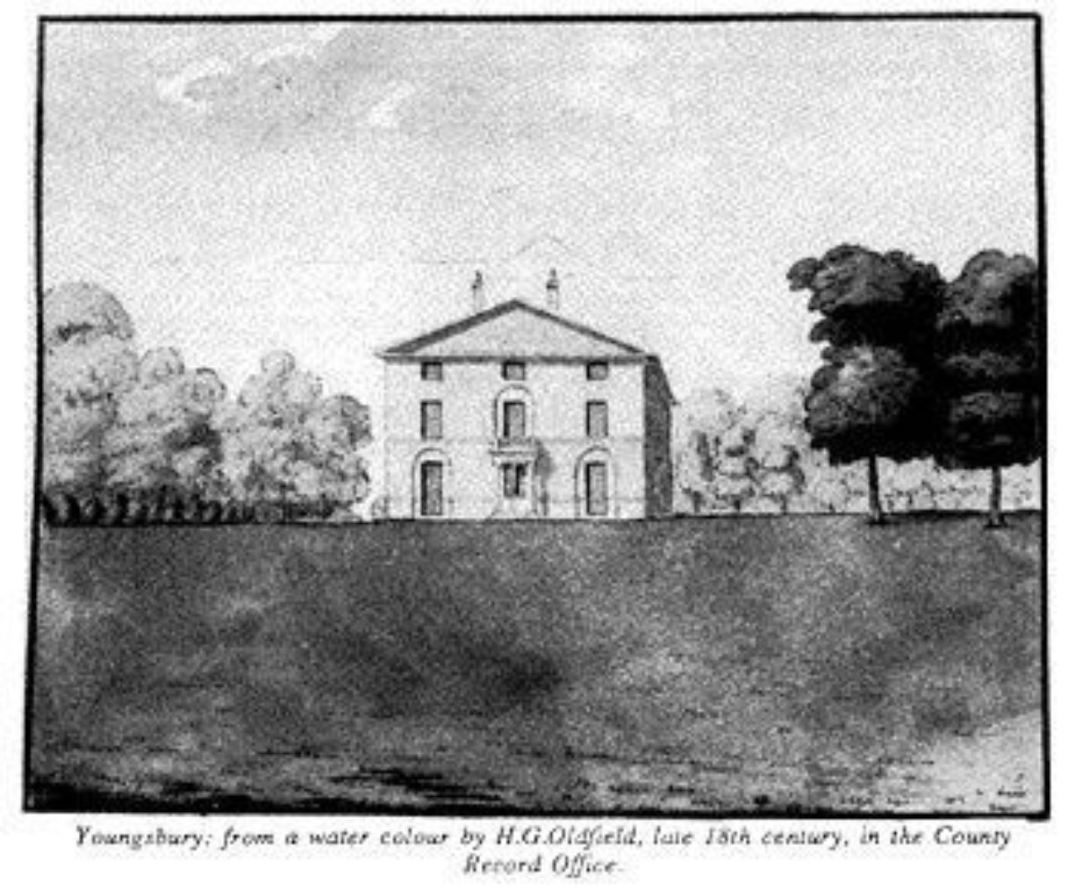 In 1545 Richard Wytherall consolidated his ownership of the manor of Youngs by acquiring the last part of the manor not in his ownership. The manor descended to David Poole (d 1758), who c 1745 built a new mansion at some distance north of the old one which was demolished. The manor was sold by Poole's widow to David Barclay in 1769, who improved and enlarged the house (VCH).